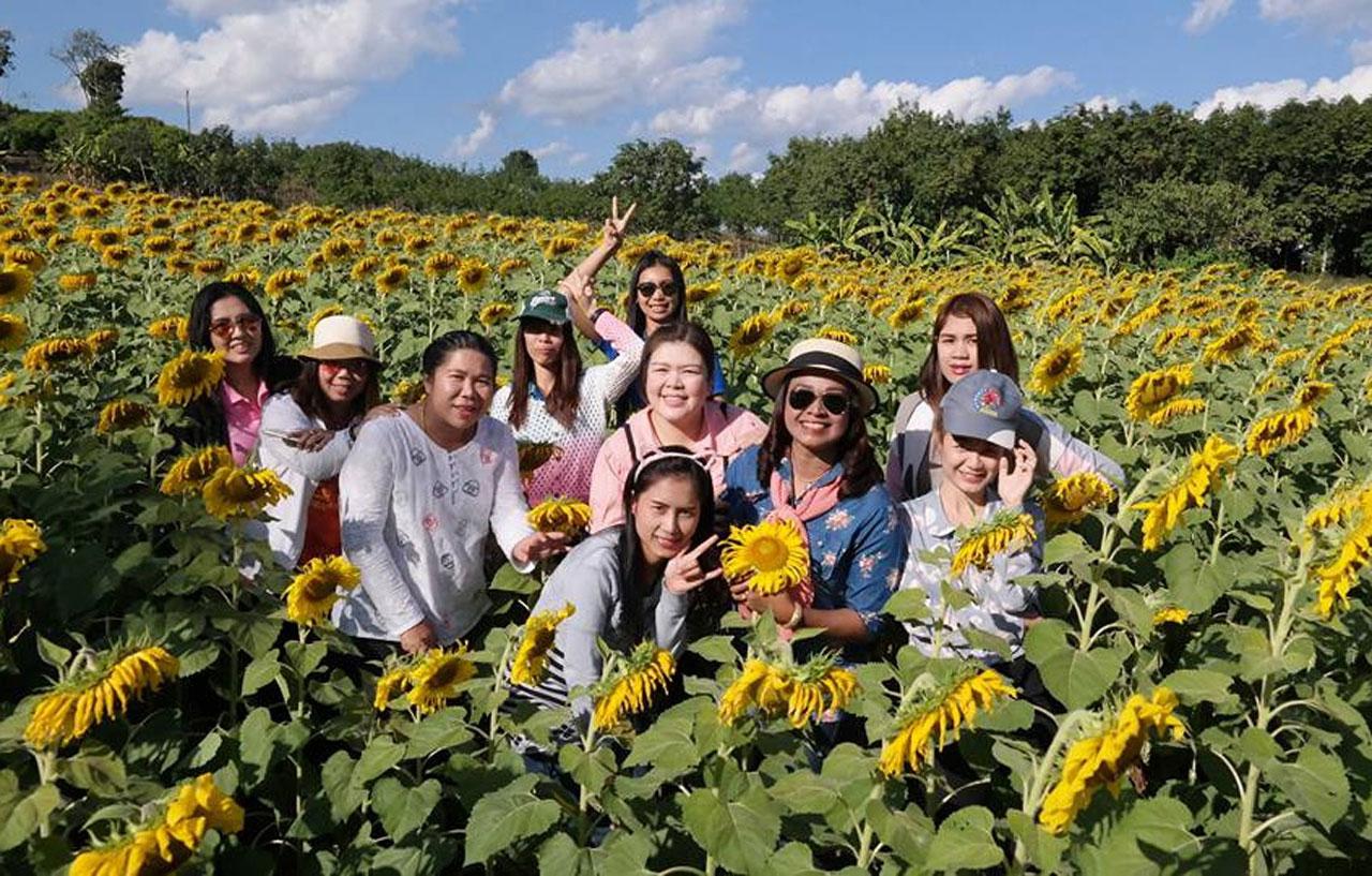 ต่อมาญาติที่มีพื้นที่ติดกันแนะนำและชวนให้ปลูกดอกทานตะวัน ซึ่งบริเวณนี้มีเจ้าของ 3 คน ปลูกคนละแปลง แปลงละ 2-3 ไร่ นางนงคราญ ซื้อเมล็ดพันธุ์มา 2 ถัง ในราคา 1,000 บาท ในตอนแรกคิดจะเก็บเกี่ยวเมล็ดทานตะวันขายเท่านั้น แต่เมื่อเข้าสู่ช่วงระหว่างปลายเดือน พ.ย. - ธ.ค. ดอกทานตะวัน บานสะพรั่งเหลืองอร่ามจนเป็นที่สะดุดตาผู้สัญจรผ่าน จึงมีคนถ่ายภาพแล้วนำไปเผยแพร่ในสื่อออนไลน์ จนกลายเป็นแหล่งท่องเที่ยวขึ้นมา