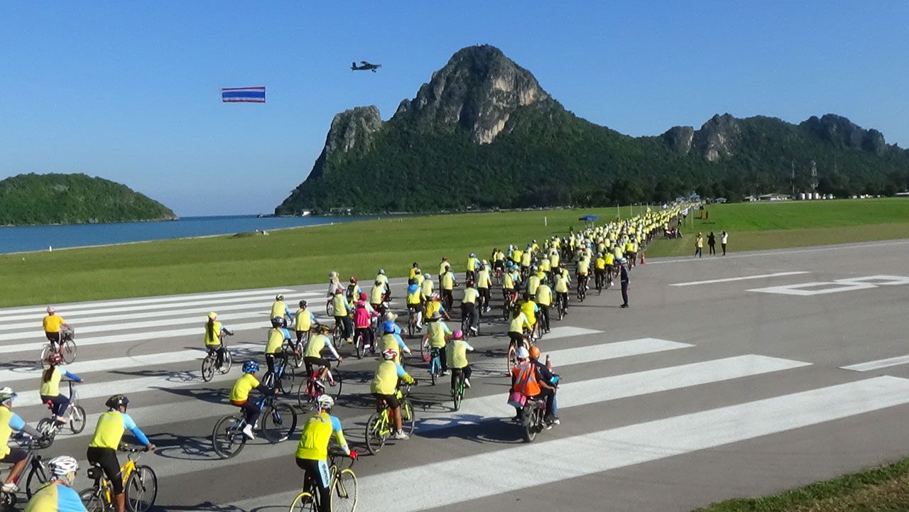 นายทวี นริสศิริกุล ผู้ว่าราชการจังหวัดประจวบคีรีขันธ์ นำข้าราชการ และประชาชนจำนวน 3,682 คน ปั่นจักรยานเฉลิมพระเกียรติ ผ่านบริเวณสนามบินกองบิน 5 หน้าอ่าวประจวบ อ.เมืองประจวบคีรีขันธ์ โดยมีเครื่องบินเอยู 23 พีชเมคเกอร์ หรือเครื่องบินโจมตีธุรการแบบที่ 2 บินเหนือพื้นดินพร้อมด้วยป้ายผ้าธงชาติผ่านผู้ปั่นจักรยาน