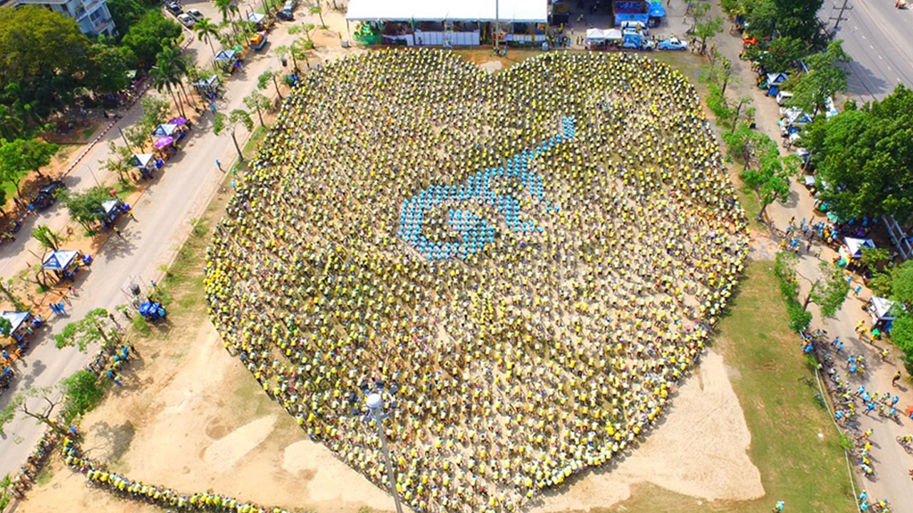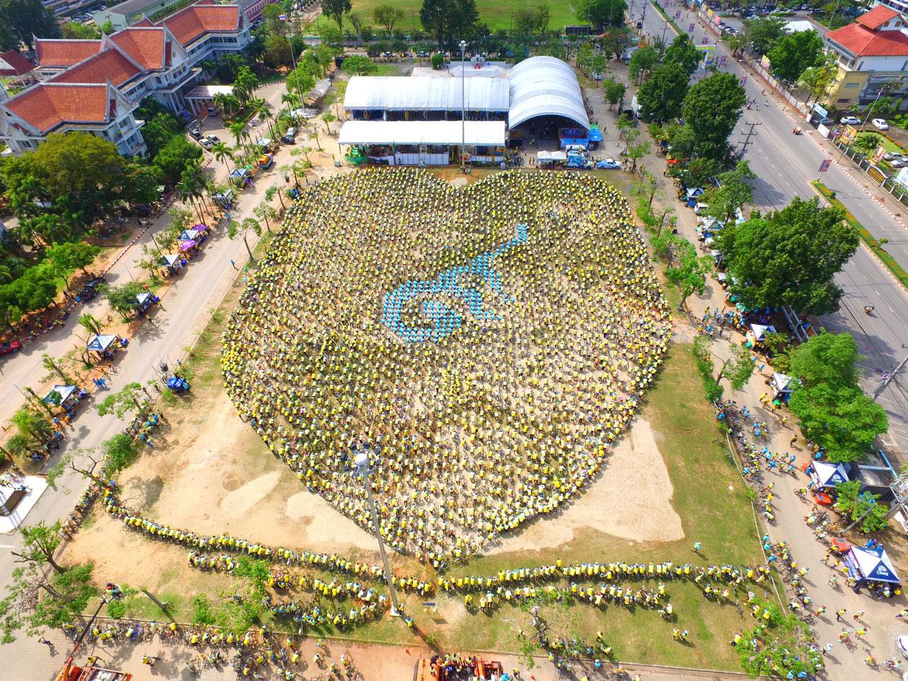 นายวงศศิริ พรหมชนะ  ผู้ว่าราชการจังหวัดสุราษฎร์ธานี นำผู้ร่วมปั่นจักรยานเฉลิมพระเกียรติกว่า 1 หมื่นคน แปรขบวนจักรยานเป็นภาพหัวใจสีเหลือง หมายเลข 9 สีฟ้าดวงใหญ่ที่สุดในประเทศไทย จนเต็มสนามหน้าศาลากลางจังหวัด เพื่อถวายแด่พระบาทสมเด็จพระเจ้าอยู่หัว