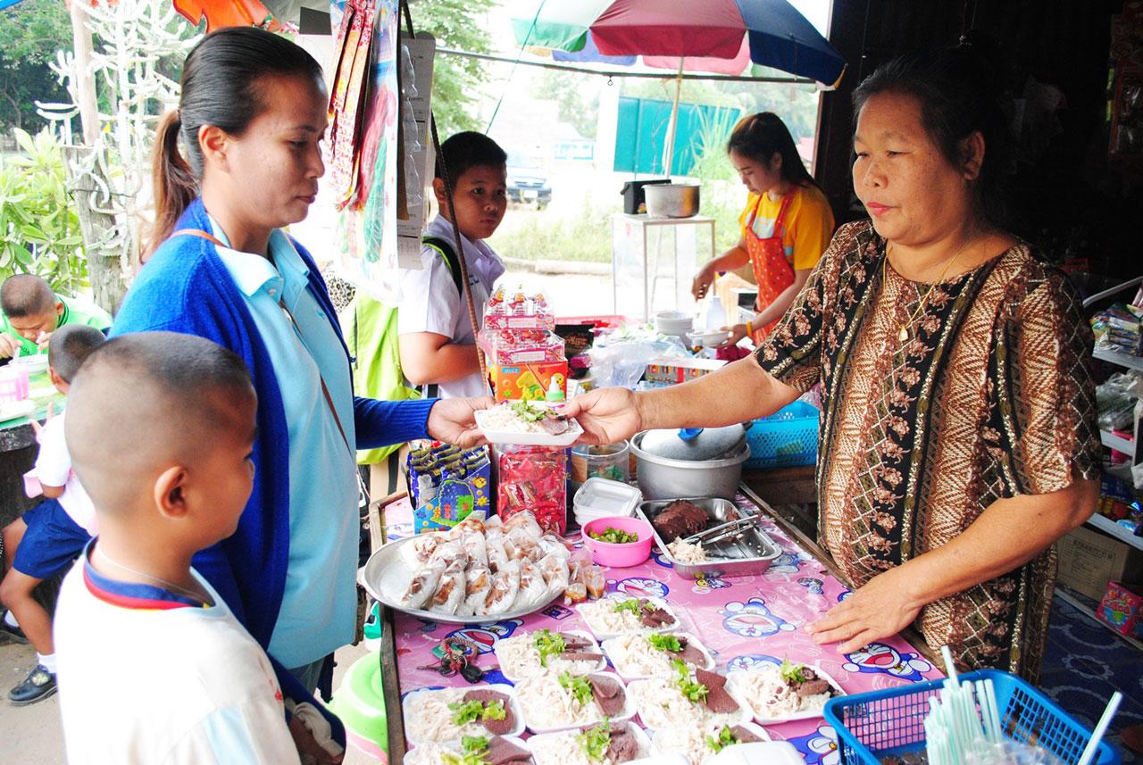 ด้าน ด.ช.สุริยา มาด้วง อายุ 9 ขวบ นักเรียนชั้น ป.4 โรงเรียนบ้านน้ำเรื่อง หนึ่งในลูกค้าตัวน้อยที่มาอุดหนุนข้าวกะเพราไข่ดาว จานละ 9 บาท บอกว่า ทุกเช้าก่อนเข้าโรงเรียน ตนจะต้องมานั่งกินข้าวที่ร้านนี้ เพราะได้เงินมาวันละ 20 บาท กินอิ่มแล้ว ยังมีเงินเหลือไว้ซื้อขนมอีก 11 บาท ส่วนมื้อกลางวัน ทางโรงเรียนมีอาหารให้กินฟรี.