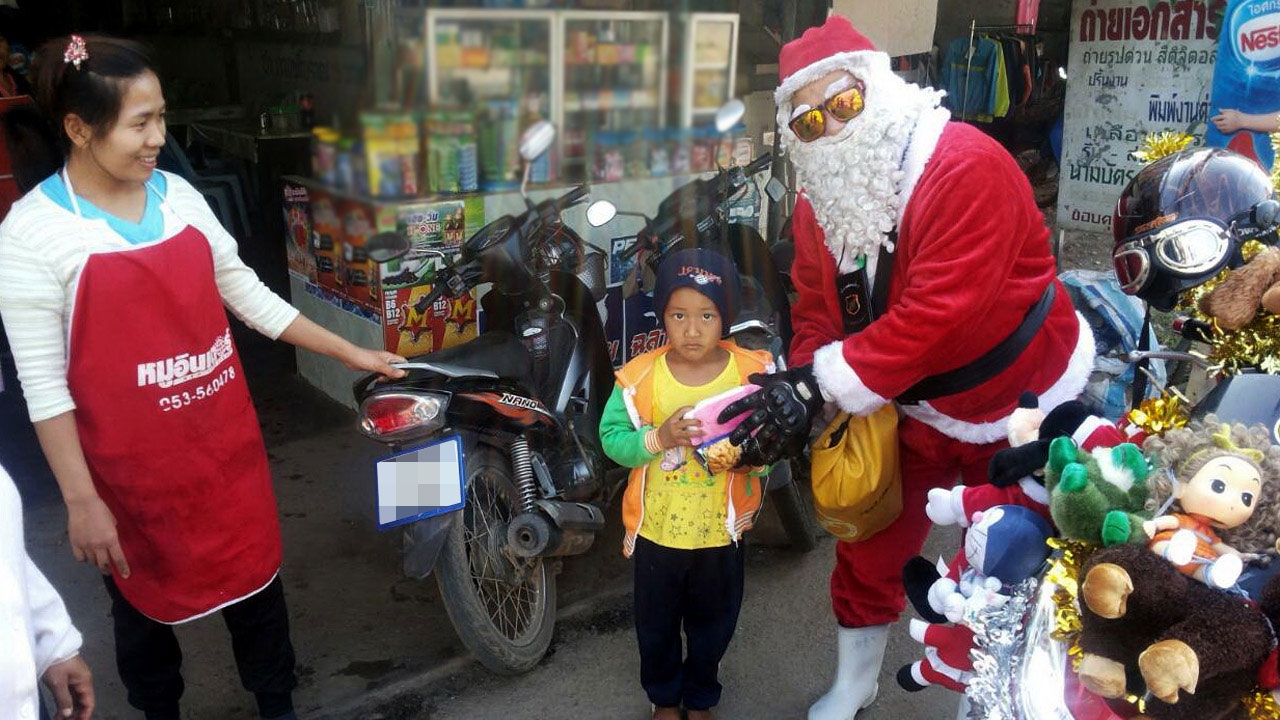 เด็กที่ห่างไกล ฮือฮา! ซานตาคลอส นั่ง จยย.โผล่แจกของขวัญเด็กๆ ใน อ.เชียงดาว จ.เชียงใหม่ เผยตัวจริงเป็นลุงจากระยองวัย 58 ปี เผยทำมาแล้ว 20 ปีไม่เคยขาด เพื่อความสุขของเด็กๆ...