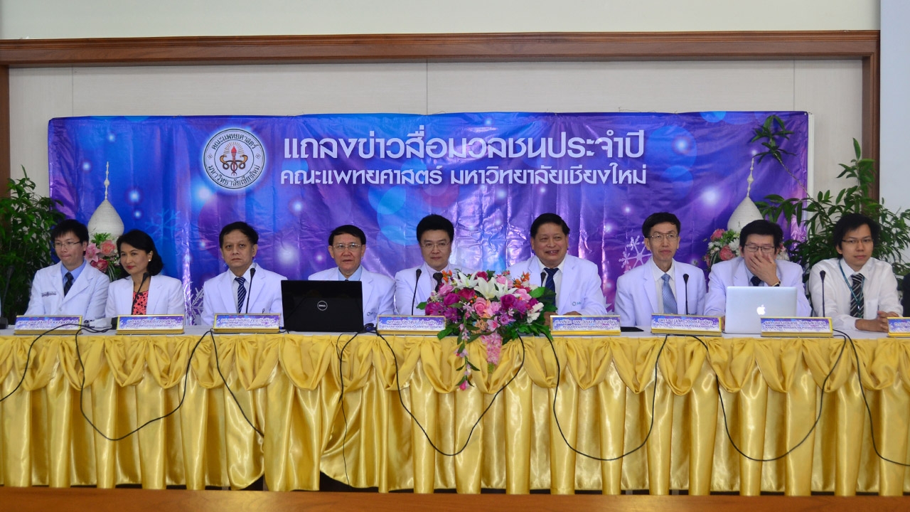 เมื่อวันที่ 24 ธ.ค. 58 ศ.คลินิก นพ.วัฒนา นาวาเจริญ คณบดีคณะแพทยศาสตร์ มช. ผศ.นพ.นิสิต วรรธ-นัจฉริยา ผู้อำนวยการโรงพยาลบาลมหาราชนครเชียงใหม่ ทีมแพทย์ สหสาขาวิชา โรงพยาบาลมหาราชนครเชียงใหม่ และศูนย์แก้ไขความพิการบนใบหน้าและศีรษะฯ คณะแพทยศาสตร์ โรงพยาบาลมหาราชนครเชียงใหม่ มหาวิทยาลัยเชียงใหม่ ได้ร่วมกันแถลงข่าวคืบหน้าการช่วยเหลือ “น้องแหยม” เด็กชายณภัทร คุ้มวงษ์ วัย 5 ขวบ อาศัยอยู่ จ.กำแพงเพชร ผู้ป่วยโรคมะเร็งเนื้อเยื่อกระดูก ใบหน้าบวมปูด มีแผลในช่องปาก อาการวิกฤติ ล่าสุดผลการรักษาเป็นที่น่าพอใจ