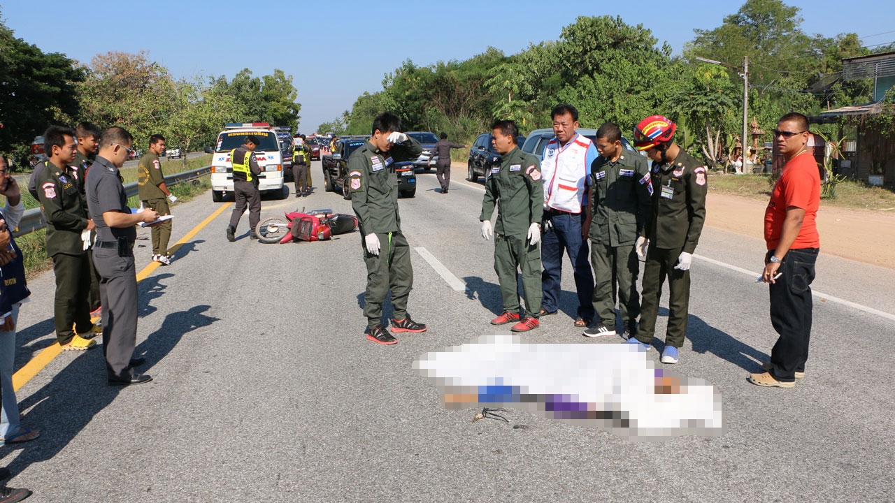 เฒ่าวัย 60 ปี ไม่ยอมขี่จักรยานยนต์เข้าจุดยูเทิร์น แต่ตัดร่องกลางถนนขึ้นไปอีกเลน ถูกกระบะบรรทุกดอกกุหลาบไปส่งปากคลองเฉี่ยวชนล้ม หัวกระแทกพื้นกะโหลกแตกเสียชีวิต เป็นรายที่ 3 ของ 7 วันอันตรายกำแพงเพชร