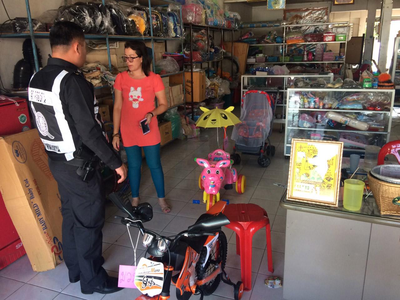 เมื่อไปถึงพบ น.ส.ธัญพร มโนมัย อายุ 35 ปี บ้านเลขที่ 364 หมู่ 1 ต.คลองลาน เจ้าของร้าน ยืนรอให้การอยู่พร้อมเล่าว่า ขณะที่กำลังขายสินค้าอยู่ในร้านและได้วางกระเป๋าสตางค์ไว้บนโต๊ะบัญชีภายในร้าน จากนั้นก็มีผู้หญิงรูปร่างอ้วน สูงประมาณ 170 ซม. อายุประมาณ 30 ปี ใส่เสื้อสีน้ำตาลใส่กางเกงยีนส์ขายาว ขี่รถจักรยานยนต์ ไม่ทราบยี่ห้อ ไม่ทราบสี มาจอดหน้าร้านถามซื้อเปลเด็ก จึงนำมาให้เลือกแต่ลูกค้าไม่ถูกใจ จึงขึ้นไปที่ชั้นสองของบ้านเพื่อนำมาให้เลือกอีก