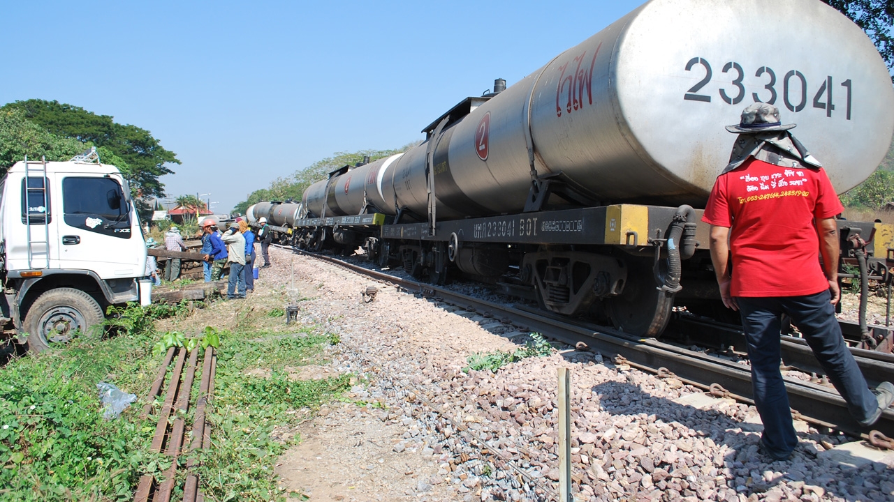 คืบหน้า รถไฟบรรทุกน้ำมันตกรางที่ หน้าสถานีรถไฟหนองหล่ม อ.แม่ทา ลำพูน จนท.เร่งสูบน้ำมันออก เพื่อซ่อมแซมรางให้ใช้การได้เป็นปกติ คาด เย็นวันนี้น่าจะเสร็จ ขณะที่ไม่มีผู้โดยสารตกค้างแล้ว