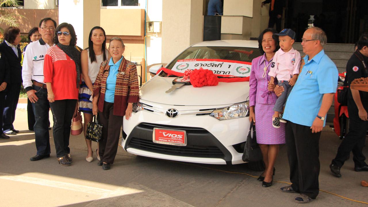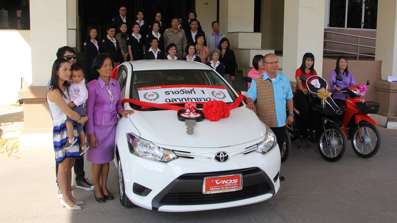 วันนี้ (7 ม.ค.) นายบัณฑิต ศีติสาร อดีตผู้อำนวยการโรงเรียนหนองหล่ม ใน อ.ดอกคำใต้ จ.พะเยา เดินทางมาที่ศาลากลางจังหวัดพะเยา พร้อมด้วยนางวิไลวรรณ รวมถึงบรรดาญาติพี่น้อง นับ 10 คน (พี่น้องเป็นข้าราชการครู 4 คน รวมอดีต ผอ.) เพื่อรับมอบรางวัลรถยนต์โตโยต้าวีออส จากนายศุภชัย เอี่ยมสุวรรณ ผู้ว่าราชการจังหวัดพะเยา และนางปัทมา เอี่ยมสุวรรณ นายกเหล่ากาชาดจังหวัด หลังจาก นายบัณฑิต เป็นผู้โชคดี ที่ซื้อสลากกาชาด หมายเลข 44376 ในงานฤดูหนาว และสืบสานประเพณีของดีจังหวัดพะเยา ประจำปี 2558 ที่จัดขึ้นระหว่างวันที่ 18-27 ธันวาคม พ.ศ.2558 ที่ผ่านมา