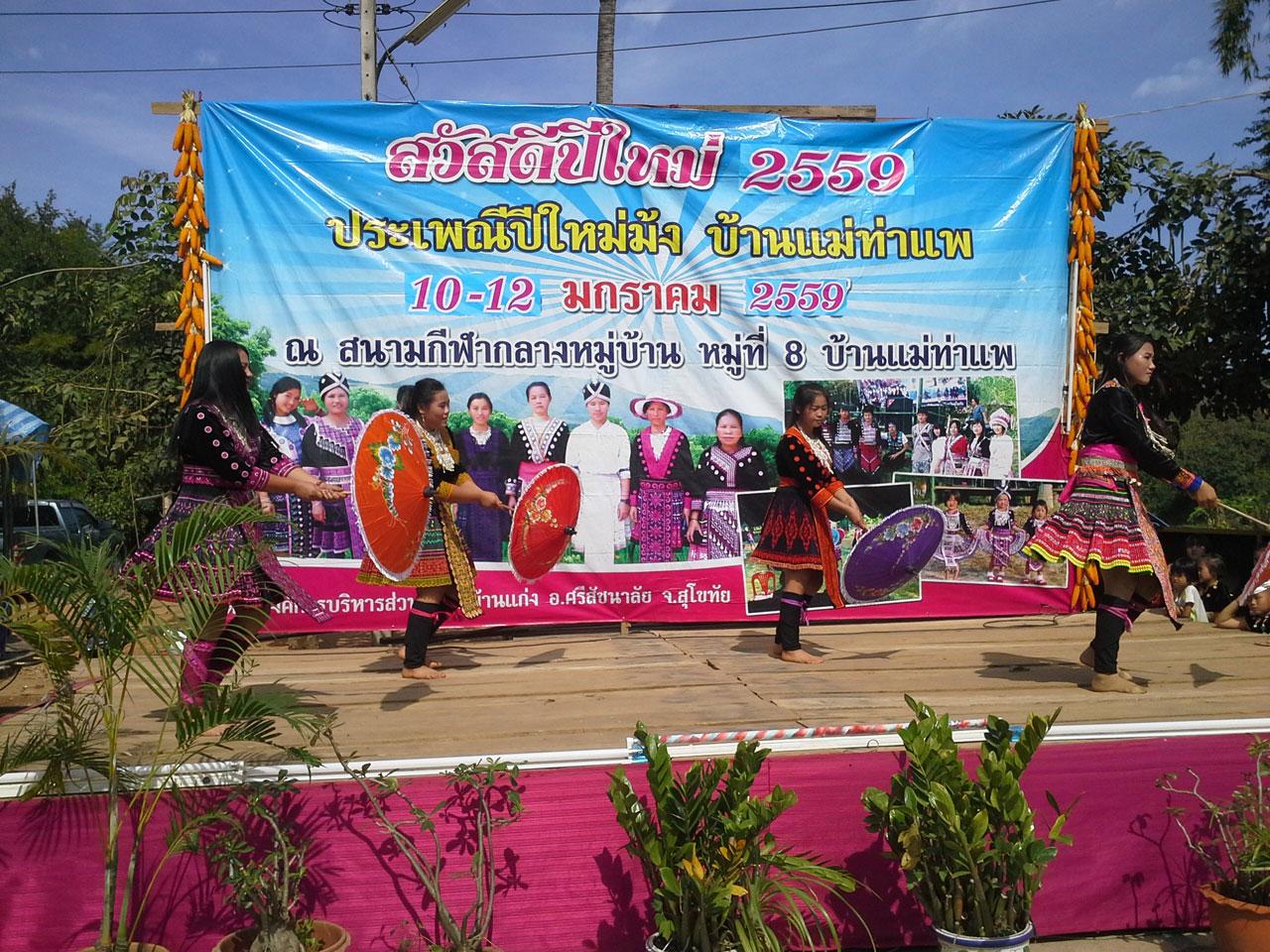 เมื่อวันที่ 10 ม.ค. 59 นายประดิษฐ์ เจนดี กำนันตำบลบ้านแก่ง อ.ศรีสัชนาลัย จ.สุโขทัย เป็นประธานเปิดงานปีใหม่ม้ง ประจำปี 2559 ณ ลานกีฬา หมู่บ้านแม่ท่าแพ หมู่ 8 ต.บ้านแก่ง โดยมีชาวม้งในหมู่บ้าน และจากที่ต่างๆ ทั้งเด็กทั้งผู้ใหญ่ร่วมงานอย่างคับคั่ง