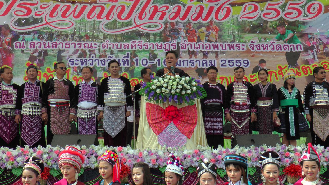 เมื่อเวลา 11.30 น. วันที่ 10 ม.ค. ที่สนามสวนสาธารณะเกาะกลางน้ำ หมู่ที่ 4 ต.คีรีราษฎร์ อ.พบพระ จ.ตาก นายสมชัยฐ์ หทยะตันย์ติ ผวจ.ตาก เป็นประธานพิธีเปิดงานปีใหม่ม้ง ประจำปี 2559 ภายใต้สโลแกน “ม้งทั่วโลก ม้งทั่วไทย หัวใจเดียวกัน รักและผูกพันตลอดไป” โดยมีนายฉัทธนาตย์ เทียนขาว นายอำเภอพบพระกล่าว วัตถุประสงค์ 1.เพื่อเป็นการเผยแพร่ศิลปวัฒนธรรมอันดีงามของท้องถิ่นให้เป็นที่รู้จักแพร่หลาย 2.เพื่อส่งเสริมความรักความสามัคคีเป็นน้ำหนึ่งใจเดียวกันรักและหวงแหนในประเพณีและวัฒนธรรมของชนเผ่า 3.เพื่อเป็นการอนุรักษ์และสืบทอดประเพณีปีใหม่ม้งให้คงอยู่สืบทอดไปชั่วลูกชั่วหลาน โดยมีหน้าส่วนราชการ, ทหาร, ตรวจ, องค์กรเอกชน, พ่อค้าและประชาชน เข้าร่วมงานดังกล่าวนับหมื่นคน โดยมีชาวม้งจากหลายประเทศเข้ามาร่วมงาน รวมทั้งผู้เข้าร่วมประกวดธิดาม้ง ปี 2559 จำนวน 25 คน โดยมีสาวงามจากประเทศ สปป.ลาวเข้าร่วมประกวดด้วย ส่วนกิจกรรมหลักคือมีการแสดงของกลุ่มแม่บ้าน,เยาวชน, การโยนลูกช่วง, ลูกข่าง, ประกวดธิดาปีใหม่ม้ง, กีฬาพื้นบ้าน, ชมบ้านจำลอง ชมวิถีชีวิตและวัฒนธรรมประเพณีของชาวไทยภูเขาเผ่าม้ง ซึ่งปีนี้การท่องเที่ยวแห่งประเทศไทย สำนักงานภาคเหนือเขต 4 ตาก อบจ.ตาก อบต.คีรีราษฎร์และผู้นำทุกหมู่บ้านพร้อมชาวบ้านตำบลคีรีราษฎร์เป็นเจ้าภาพจัดงานซึ่งงานจะมีตั้งแต่วันที่ 10-16 ม.ค.