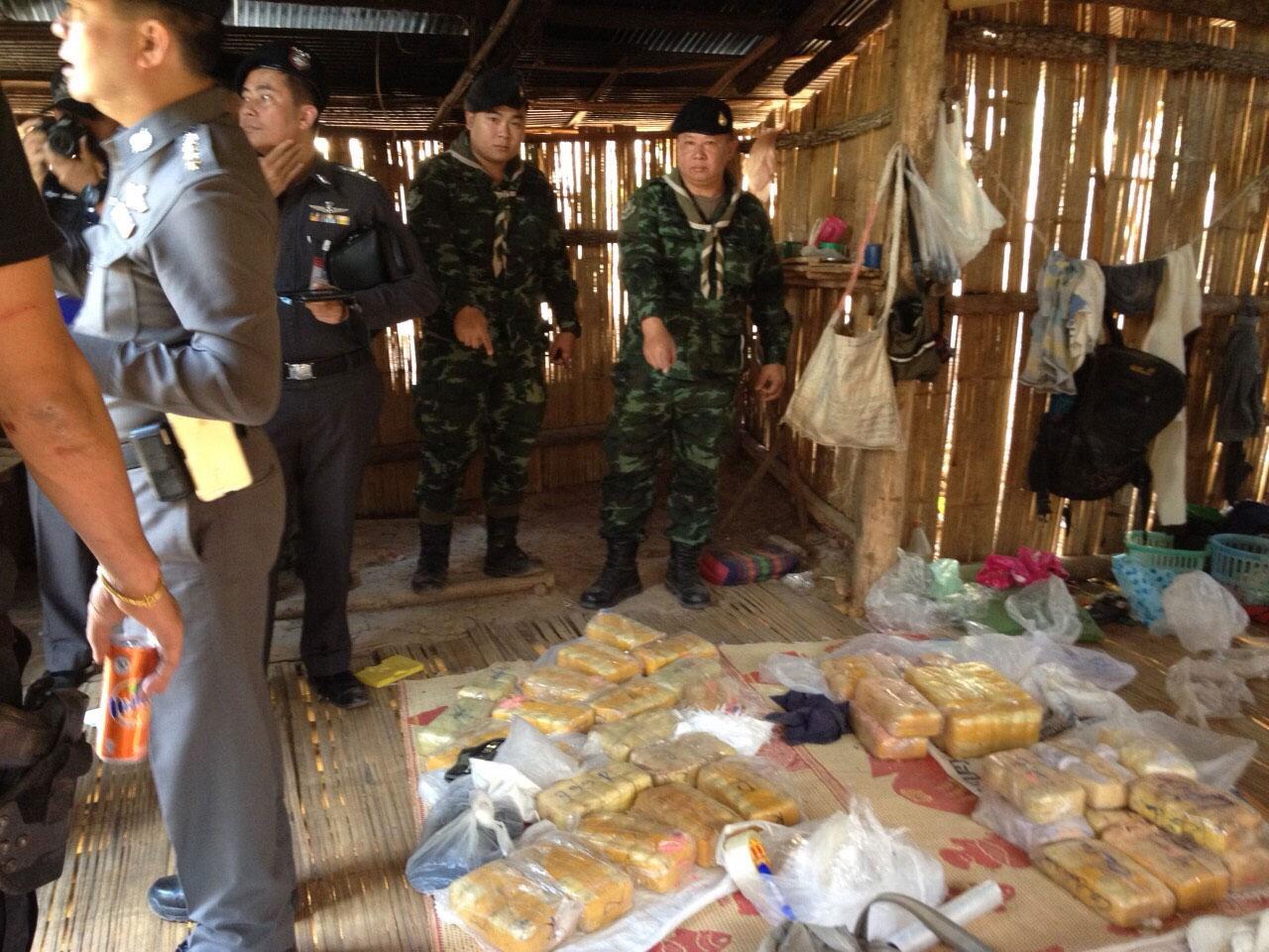 เมื่อกำลังตำรวจในพื้นที่เข้าไปถึง ได้ตรึงกำลังบางส่วนไว้โดยรอบ เพราะในบริเวณที่เกิดเหตุมีลูกระเบิดตกอยู่ โดยจุดที่ได้เคลีย์พื้นที่พบศพชายคนหนึ่งนอนตายในพงป่า ใกล้กันมีกระท่อมมุงหลังคา พบมียาบ้าเป็นห่อตกอยู่จำนวนถึง 300 มัด รวมยาบ้าทั้งหมด 600,000 เม็ด และทางเจ้าหน้าที่ตำรวจ ปส.ได้ส่งมอบผู้ต้องหาที่ถูกจับในที่เกิดเหตุจำนวน 3 คน มี นายกอ จ่าเว อายุ 31 ปี นายจะหอติ จะนะ อายุ 52 ปี นายจะแฮ จะโบ อายุ 60 ปี ทั้งหมดเป็นชาวเขาเผ่ามูเซอในพื้นที่ อ.แม่แตง ส่วนผู้เสียชีวิตยังไม่ทราบชื่อ
