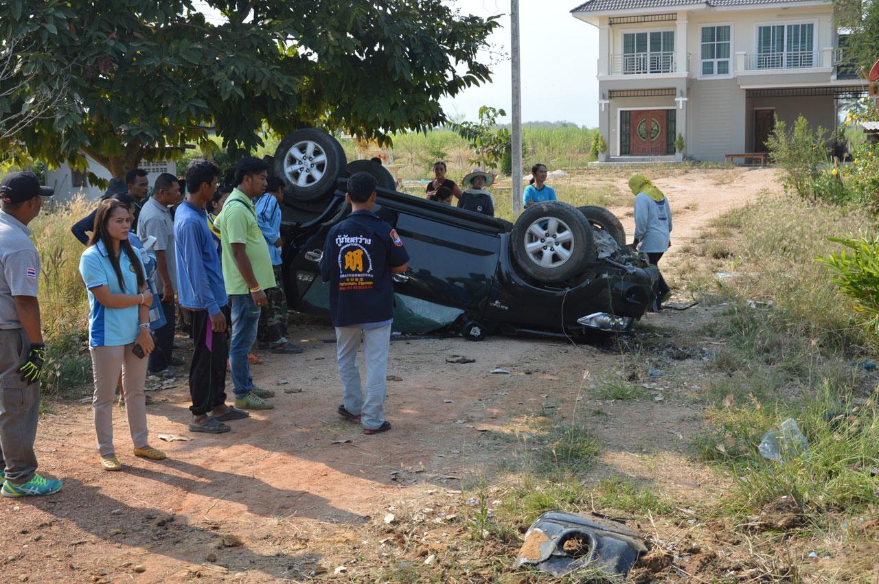ที่เกิดเหตุพบรถกระบะ ยี่ห้อโตโยต้า ฟอร์จูนเนอร์ สีดำ ทะเบียน กค 7694 กำแพงเพชร ลักษณะพลิกคว่ำล้อชี้ฟ้า ห่างออกไปเล็กน้อยพบศพผู้เสียชีวิตเป็นคนขับที่มาเพียงคนเดียว กระเด็นตกออกนอกรถในสภาพคอหัก สวมชุดนักศึกษา ทราบชื่อต่อมาคือ น.ส.สุพัตร มีทอง อายุ 25 ปี บ้านเลขที่ 346/1 หมู่ 21 ต.คลองน้ำไหล อ.คลองลาน จ.กำแพงเพชร เป็นนักศึกษาชั้นปีที่ 3 คณะมนุษยศาสตร์และสังคมศาสตร์ วิชารัฐประศาสนศาสตร์ มหาวิทยาลัยราชภัฏกำแพงเพชร