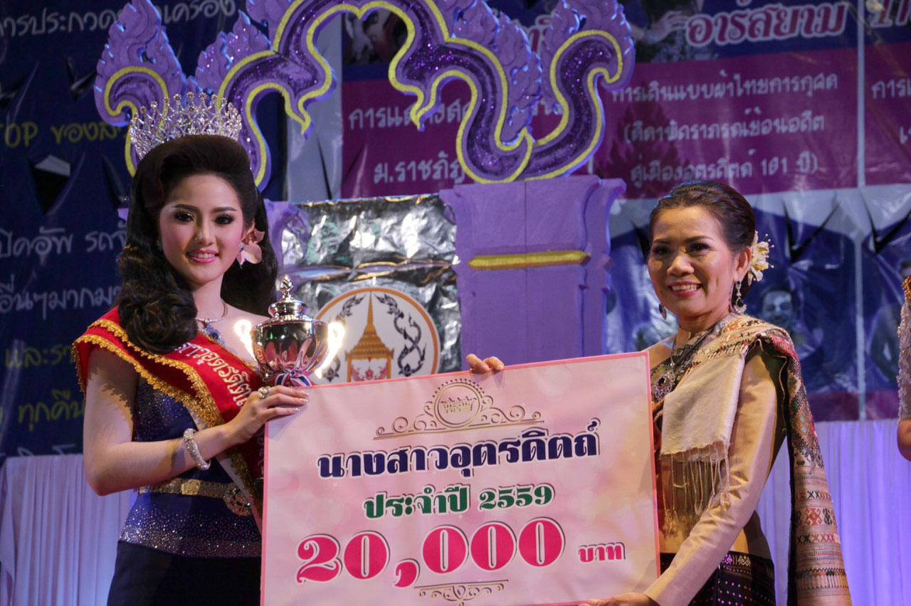 เมื่อคืนวันที่ 13 มกราคม 2559 ที่ผ่านมา บริเวณเวทีกลางสนามกีฬาพิชัยดาบหัก ในงานพระยาพิชัยดาบหัก และงานกาชาดจังหวัดอุตรดิตถ์ นายสุรศักดิ์ เจริญศิริโชติ ผวจ.อุตรดิตถ์ เป็นประธานในพิธีประกวดนางสาวอุตรดิตถ์ ประจำปี 2559 มีนายชัยศิริ ศุภรักษ์จินดา นายก อบจ.อุตรดิตถ์ ในฐานะประธานจัดงานการประกวดสาวงามอุตรดิตถ์ โดยมีสาวงามในพื้นที่จังหวัดอุตรดิตถ์ เข้าร่วมประกวดทั้งสิ้น จำนวน 49 สาวงาม และมีอายุต่ำสุด 18 ปี อายุสูงสุด 25 ปี ชิงมงกุฎเพชร ถ้วยรางวัล สายสะพาย เงินสดพร้อมของรางวัล การประกวดสาวงามจะเน้นสาวงามที่มีภูมิลำเนาในพื้นที่อุตรดิตถ์เท่านั้น