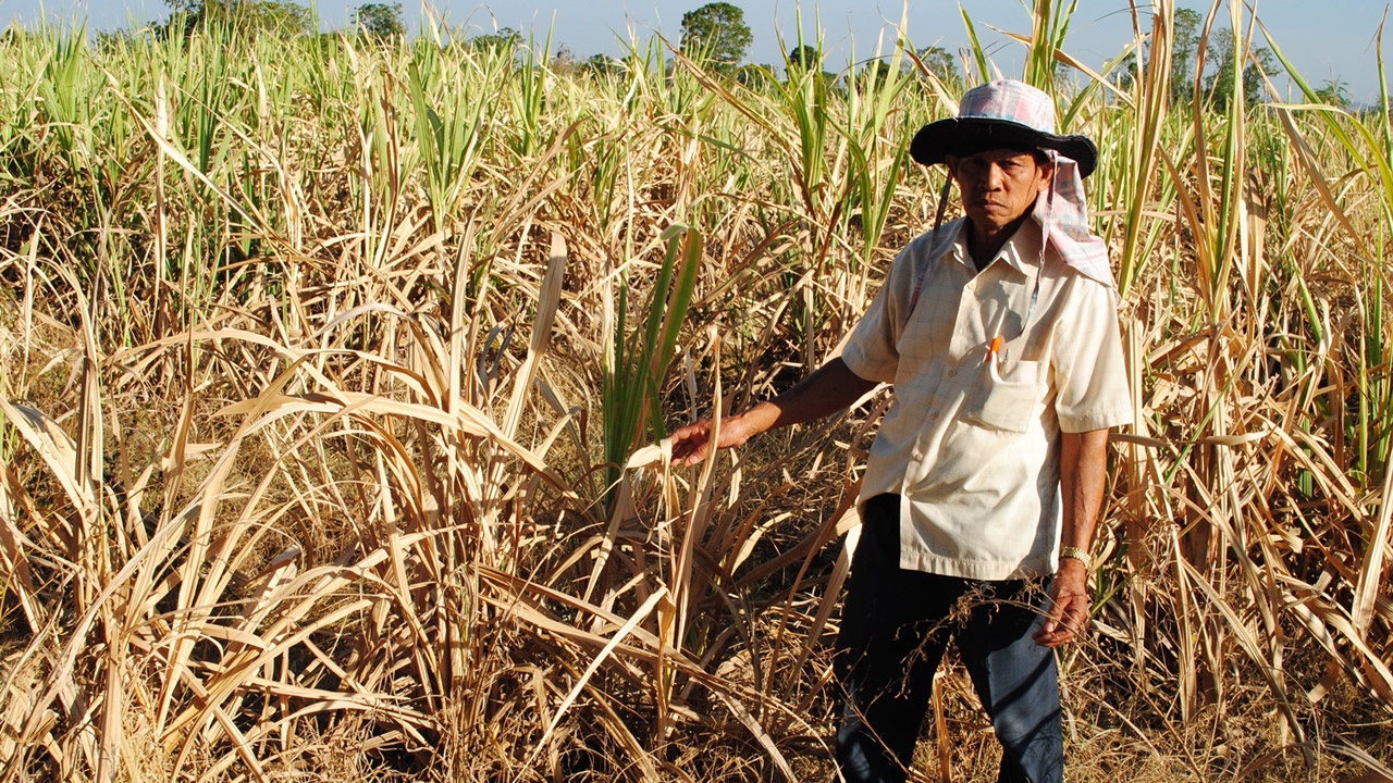 วันที่ 17 ม.ค. ผู้สื่อข่าวเดินทางไปที่ ต.วังน้ำขาว อ.บ้านด่านลานหอย จ.สุโขทัย ซึ่งชาวบ้านส่วนใหญ่มีอาชีพทำนาและปลูกอ้อย พบว่า ขณะนี้มีอ้อยยืนต้นตายเป็นจำนวนมาก บางส่วนที่ยังเหลืออยู่ก็มีสภาพยอดและใบเริ่มเหลือง ลำต้นแคระแกร็น ชาวบ้านบางรายต้องจำใจตัดขายส่งโรงงาน แม้ว่าจะขาดทุนยับเยินดีกว่าปล่อยให้ยืนต้นตายทั้งหมด อันเนื่องมาจากสถานการณ์ภัยแล้งต่อเนื่อง มาตั้งแต่ปลายปี 2557