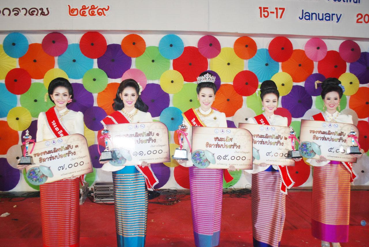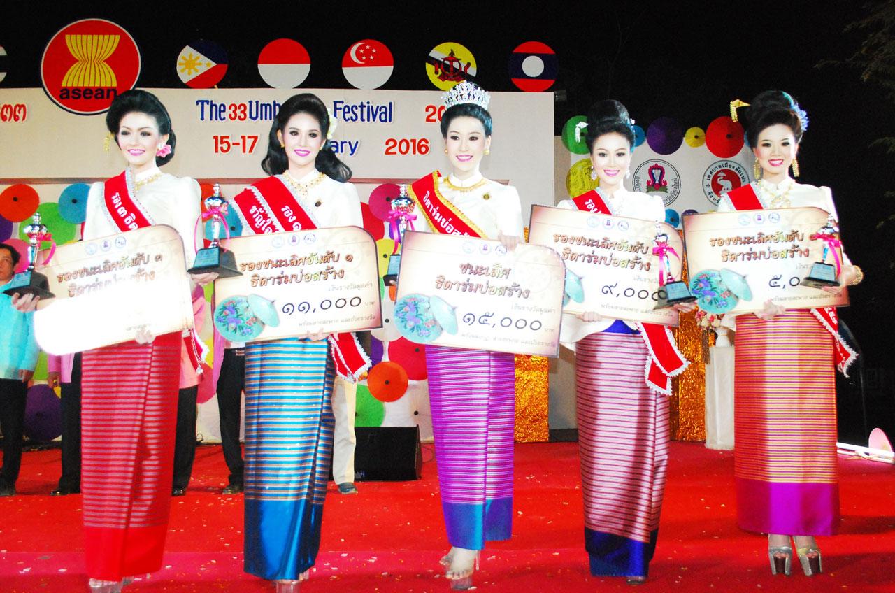 การประกวดในครั้งนี้ มี 30 สาวงามเข้าร่วม ปรากฏว่าขวัญใจธิดาร่มบ่อสร้าง ที่ชนะใจกรรมการในครั้งนี้และสามารถค้วามงกุฎไปครองได้แก่ น.ส.สชิดากาญจน์ ธะนะคำ หรือน้องอาย อายุ 16 ปี หมายเลข 16 กำลังศึกษาชั้น ปวช. ปี 1 วิทยาลัยเทคโนโลยีพาณิชยการลานนา จากนั้นนายอำเภอสันกำแพง เป็นผู้สวมมงกุฎมอบถ้วยรางวัลสายสะพาย พร้อมเงินสด 15,000 บาท ส่วนรองอันดับ 1 ได้แก่ น.ส.อมรรัตน์ วังใจ หมายเลข 29 พร้อมพ่วงตำแหน่งขวัญใจสื่อมวลชน ขณะที่รองอันดับ 2 คือ น.ส.มัสชริยา ทองเมืองสัก หมายเลข 14