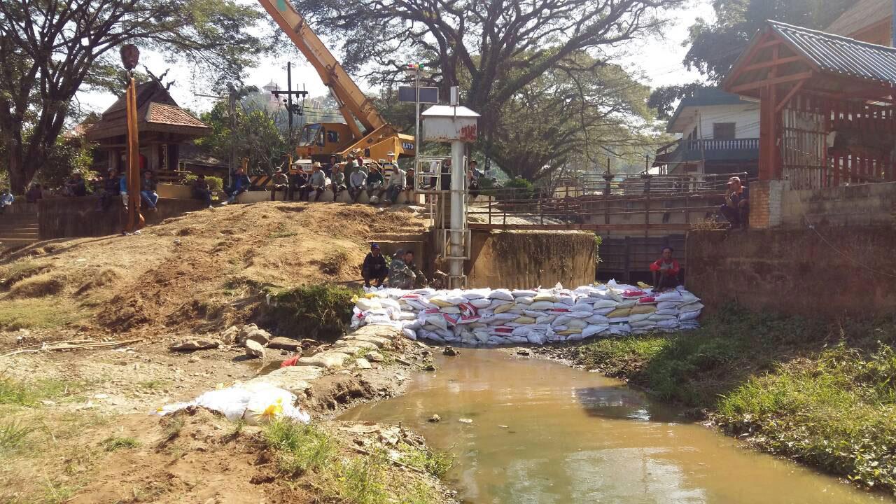 เมื่อวันที่ 21 ม.ค. 59 นายบุญยัง สุนันตา ผู้ใหญ่บ้านหมู่ 8 ต.แม่สาย อ.แม่สาย จ.เชียงราย นำชาวบ้าน 4 ตำบลของ อ.แม่สาย กว่า 100 คน ร่วมกับเทศบาลแม่สายมิตรภาพ นำรถแบคโฮ ขุดร่องน้ำในลำน้ำแม่สาย ให้ไหลไปที่หน้าลำเหมืองสายลำจอย หมู่ 1 ต.เวียงพางคำ ก่อนจะช่วยกันวางกระสอบทรายปิดกั้นปากลำเหมืองสายน้ำจอย และใช้เครื่องสูบน้ำของเทศบาลตำบลแม่สาย เร่งสูบผันน้ำเข้าลำเหมือง โดยมีระยะทางยาวกว่า 30 กม. เพื่อส่งต่อไปยังแปลงข้าวนาปรัง และพื้นที่ทำการเกษตรของชาวบ้าน 4 ตำบล มี ต.แม่สาย เวียงพางคำ ศรีเมืองชุม และ ต.เกาะช้าง พื้นที่กว่า 40,000 ไร่ เพื่อบรรเทาความเดือดร้อนที่กำลังขาดแคลนน้ำอย่างหนัก ข้าวนาปรังกำลังจะแห้งตาย