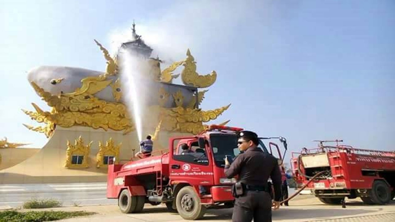ที่เกิดเหตุพบไฟกำลังโหมไหม้ยอดกาแลบนหลังคาของพิพิธภัณฑ์ ซึ่งสร้างเป็นรูปปลาบึก มีความสูงขนาดตึก 4 ชั้น เจ้าหน้าที่ดับเพลิงระดมฉีดน้ำเลี้ยงไม่ให้เพลิงโหมไหม้ตัวอาคาร ใช้เวลาประมาณ 20 นาที จึงสามารถควบคุมเพลิงไว้ได้ จากนั้นเจ้าหน้าที่ได้เข้าไปตรวจสอบตัวอาคาร พบหลังคาบนสุดเหนืออาคารรูปปลาบึกเสียหาย ในเบื้องต้นเจ้าหน้าที่ประเมินค่าเสียหายประมาณ 2 แสนบาท