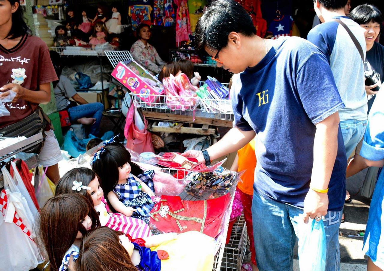 ส่วนที่ตลาดซื้อขายตุ๊กตาลูกเทพย่านสำเพ็ง และซอยวานิช 1 ผู้สื่อข่าวรายงานว่า พบร้านค้าขายตุ๊กตาขนาดเท่าเด็กทารก รวมถึงเสื้อผ้า รองเท้า เครื่องประดับตกแต่ง อยู่เพียงไม่กี่ร้านค้า ส่วนลูกค้าที่มาซื้อก็มีค่อนข้างบางตา ซึ่งจากการสอบถามนางภา (สงวนนามสกุล) อายุ 52 ปี แม่ค้ารายหนึ่ง กล่าวว่า ที่ร้านจำหน่ายตุ๊กตาลูกเทพตัวละ 1,500-1,700 บาท หลังจากมีตำรวจมาจับกุม และกระแสวิจารณ์คนเลี้ยงตุ๊กตาลูกเทพนั้น ทำให้ยอดขายตกลง เดิมที่เคยขายได้เฉลี่ยวันละ 20 ตัว จนวันนี้ขายได้ไม่ถึงวันละ 10 ตัว เป็นลูกค้าประเภทผู้ปกครองซื้อให้บุตรหลานเล่น แต่เดิมลูกค้าส่วนใหญ่ที่ซื้อไปเป็นประเภทซื้อไปขายต่อ แต่พอมีการยึดตุ๊กตาลูกเทพหากไม่สามารถแสดงใบกำกับเสียภาษี ทำให้ลูกค้ากลุ่มนี้หายไปเพราะกลัวเกิดปัญหาดังกล่าว ซึ่งตอนที่ตนซื้อมา ก็ซื้อมาจากร้านส่ง ไม่ทราบว่าร้านค้าส่งนำสินค้ามาจากแหล่งใด แต่เมื่อมีพ่อค้าแม่ค้ามาซื้อกันเยอะมาก ทำให้สินค้าร้านขายส่งหมดเร็ว การตรวจยึดเลยมาอยู่ที่พวกเรา อย่างไรก็ตาม หากตรวจจริงๆ ก็อย่าเล็งแค่ตุ๊กตา ลองดูสินค้าประเภทอื่นที่เข้าข่ายเลี่ยงภาษีด้วย