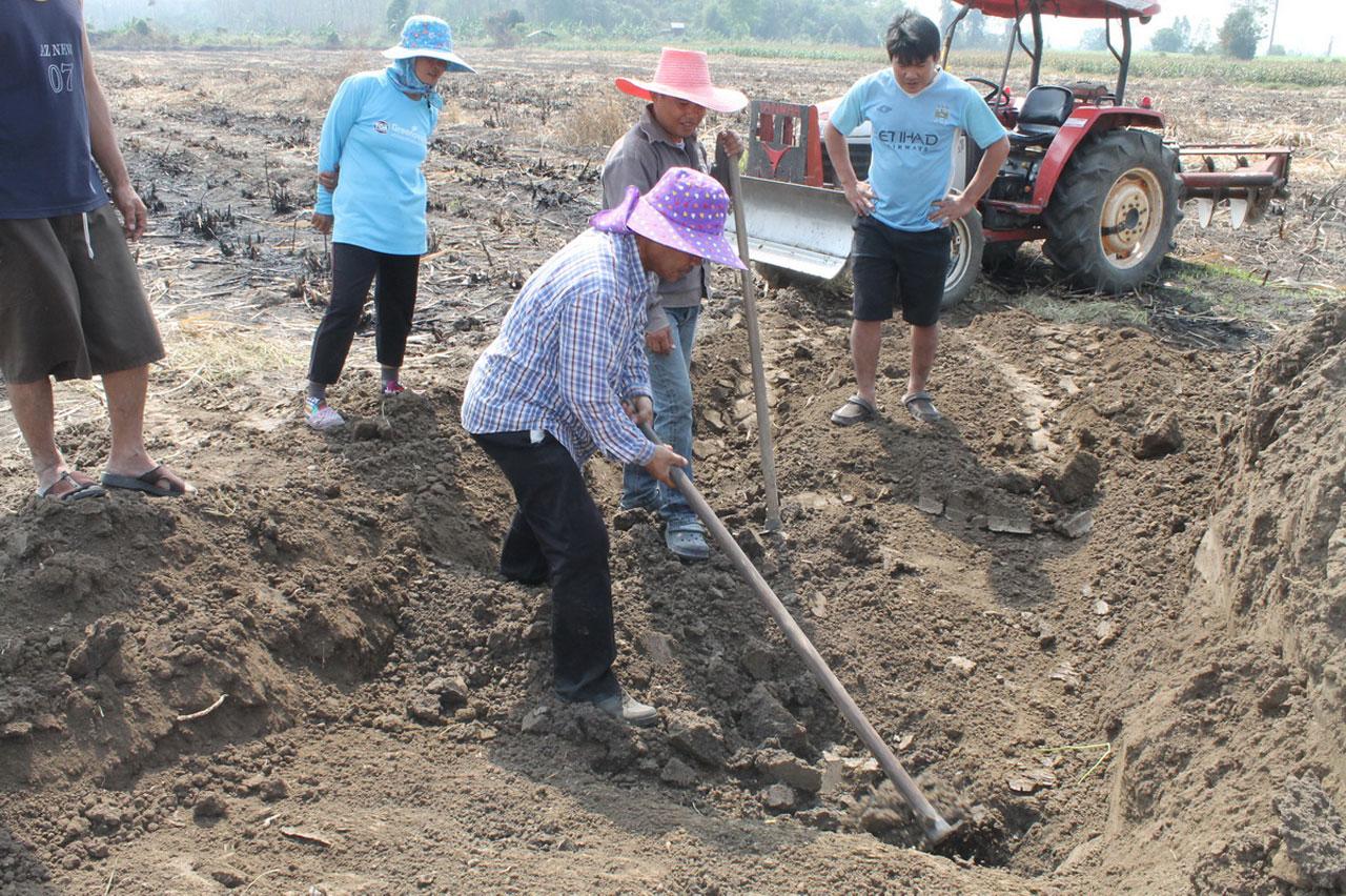 นางประจวบ เผยว่า ปีนี้ต้องขุดหาโพรงแมงมันนานกว่าปีที่แล้ว เนื่องจากภัยแล้งยาวนานไม่มีฝน สภาพอากาศร้อน แมงมันจึงทำรังวางไข่ลึกลงไปในดิน พวกตนเริ่มขุดกันตั้งแต่เวลาประมาณ 10 โมงเช้ายันบ่ายโมง ลึกลงไปกว่า 2 เมตร ก็ยังขุดไม่ถึงรังที่วางไข่ จนต้องนำรถไถมาไถดินด้านบนที่แข็งออกไป แล้วจึงลงมือขุดหาโพรง เมื่อพบไข่ในโพรงซึ่งเรียงเป็นชั้นๆ คล้ายกับรังต่อหัวเสืออยู่ใต้ดินแล้ว ก็ต้องใช้ทัพพีค่อยๆ ตักใส่ลงในภาชนะ