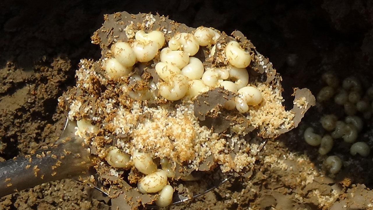 ชาวบ้านที่กำแพงเพชร ว่างจากงานตัดอ้อย ออกขุดจอมปลวกหาโพรงแมงมัน เพื่อนำไข่เป็นอาหาร หรือถ้าขายจะได้ กก. 800-1,000 บาท เผยรสชาติสุดโอชะ อร่อยทุกเมนู หนึ่งปีมีครั้งเดียว ปีนี้แล้ง รังอยู่ลึก ถึงขั้นลงทุนใช้รถไถขุดก็ยอม...