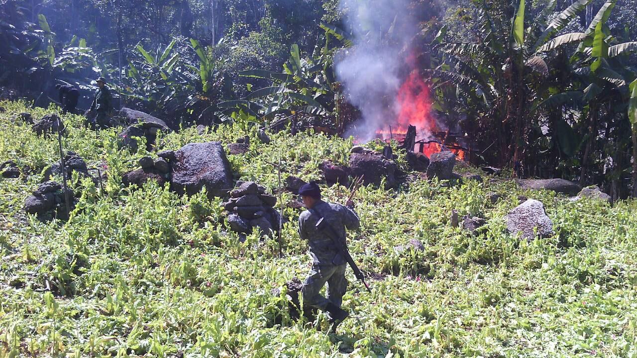 เจ้าหน้าที่ปกครองพบพระ สนธิกำลังทหาร-ป่าไม้ กว่า 70 นาย บุกทำลายไร่ฝิ่นพื้นที่ 17 ไร่กว่า บนเทือกเขาถนนธงชัย รอยต่อสองอำเภอ กลุ่มขบวนการมีการยิงข่มขู่ ก่อนหลบหนีไป...