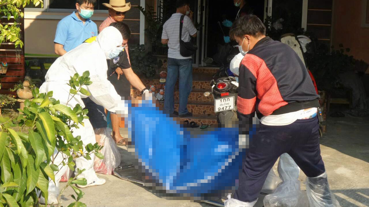 ที่เกิดเหตุเป็นบ้านเดี่ยวชั้นเดียว 3 ห้องนอน 2 ห้องน้ำ ปลูกบนพื้นที่ร่วม 60 ตร.ว. หน้าบ้านมีรถเก๋งโตโยต้า วีออส สีขาว ทะเบียน ขต 64 เชียงใหม่กับรถ จยย.อีก 2 คัน จอดไว้ในสภาพเรียบร้อย เมื่อเจ้าหน้าที่เปิดประตูเลื่อนกระจกออก ปรากฏว่ากลิ่นเหม็นเน่าของซากศพโชยปะทะจมูกอย่างรุนแรงถึงกับเบือนหน้าหนี ในห้องนอนที่ประตูเปิดอ้าไว้พบศพร่างเหยื่อฆาตกรรมนอนตายบนเตียงนอน สภาพศพถูกหั่นร่างเป็น 6 ท่อน คือท่อนแรกตัดคอ ตัดแขนทั้งสองข้าง ขาทั้งสองข้างและหั่นครึ่งลำตัว เปลือยกายและห่อด้วยถุงพลาสติกสีดำน้ำเหลืองไหลเยิ้มเป็นแนวและศพถูกเพลิงไหม้เป็นบางส่วน ใกล้กันพบมีดปลายแหลมตกข้างศพ 2 เล่มกับเทียนไขจำนวนหนึ่งที่จุดไฟทิ้งไว้แต่ดับเสียก่อน เบื้องต้นแพทย์ลงความเห็นว่าเสียชีวิตมาแล้วไม่ต่ำกว่า 5 วัน และคาดว่ามีทรัพย์สินมีค่าบางส่วนหายไปด้วย