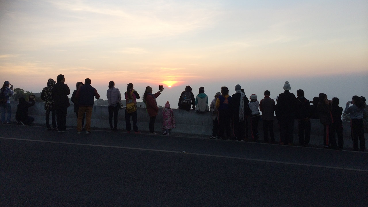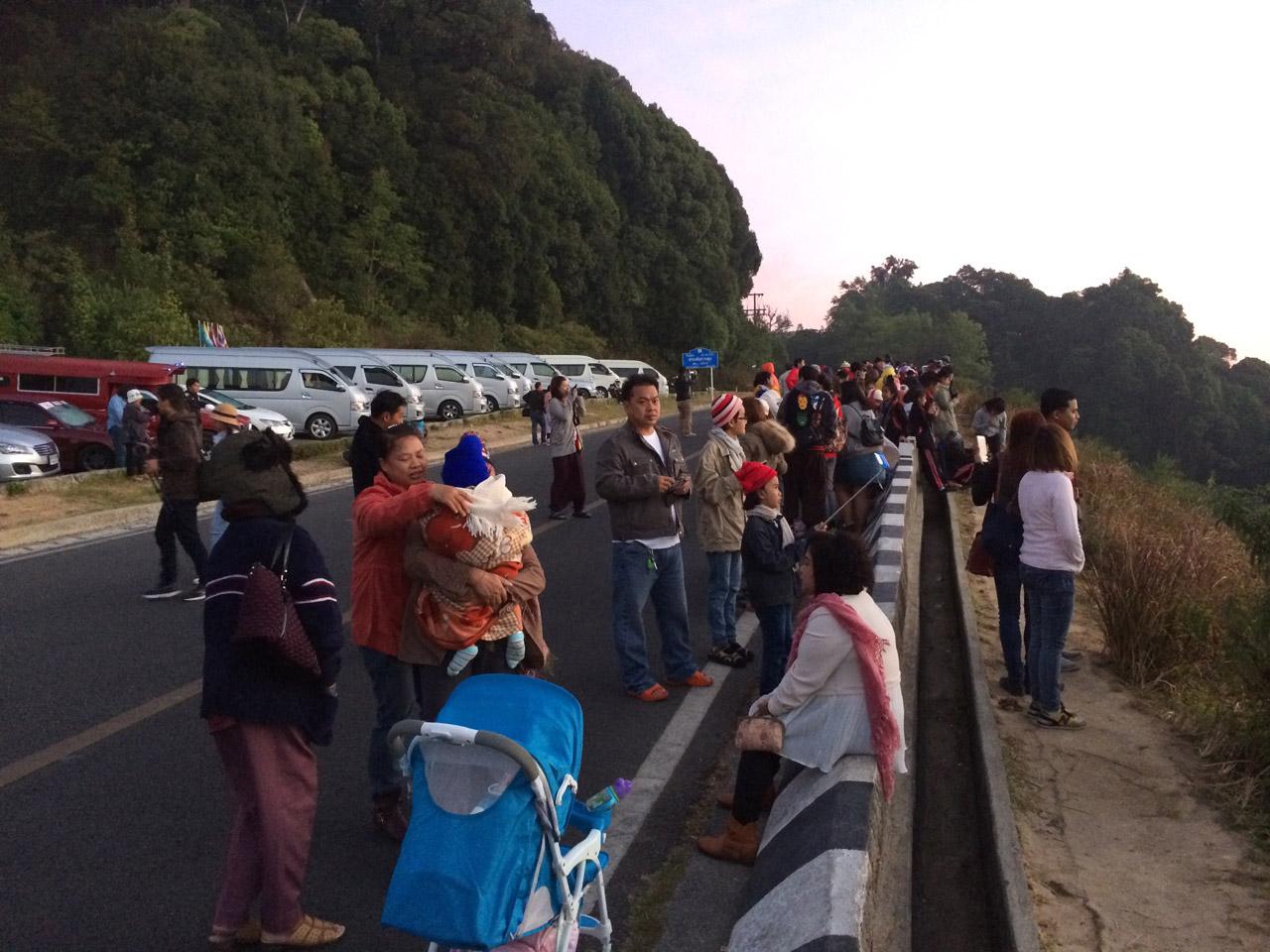 เมื่อเช้าวันที่ 19 ก.พ. 59 สภาพอากาศบนดอยอินทนนท์ยังคงหนาวเย็น นักท่องเที่ยวจำนวนมากแห่ชมพระอาทิตย์ขึ้น บริเวณกิ่วแม่ปาน จนแน่นขนัด