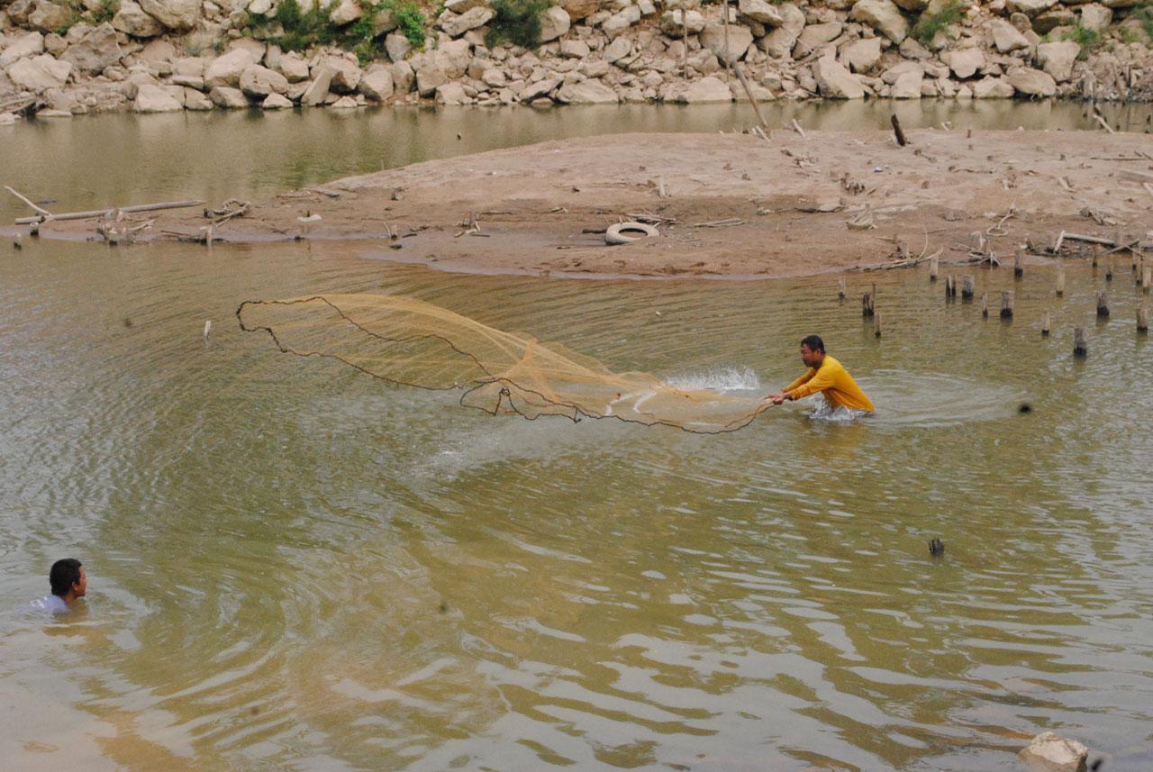 เมื่อวันที่ 25 ก.พ. 59 ผู้สื่อข่าวรายงานว่าชาวบ้านใน อ.สวรรคโลก จ.สุโขทัย นำแหออกมาทอดเพื่อหาปลาตามแอ่งน้ำในแม่น้ำยมที่น้ำแห้งขอด บริเวณใต้สะพานพัฒนาท้องถิ่น ต.เมืองสวรรคโลก จากการสอบถาม นายพรมมา โพธิ์ทาเมือง อายุ 53 ปี อยู่บ้านเลขที่ 1/5 ซอยปิณฑดิษฐ์ ถนนหลวงพ่อเจ้า ต.เมืองสวรรคโลก อ.สวรรคโลก เล่าให้ฟังว่าปกติแล้วตนจะมีอาชีพรับจ้างก่อสร้าง ถ้ามีเวลาว่างก็จะชวนพรรคพวกนำแหออกมาหาปลาตามสระหรือคลองต่างๆ
