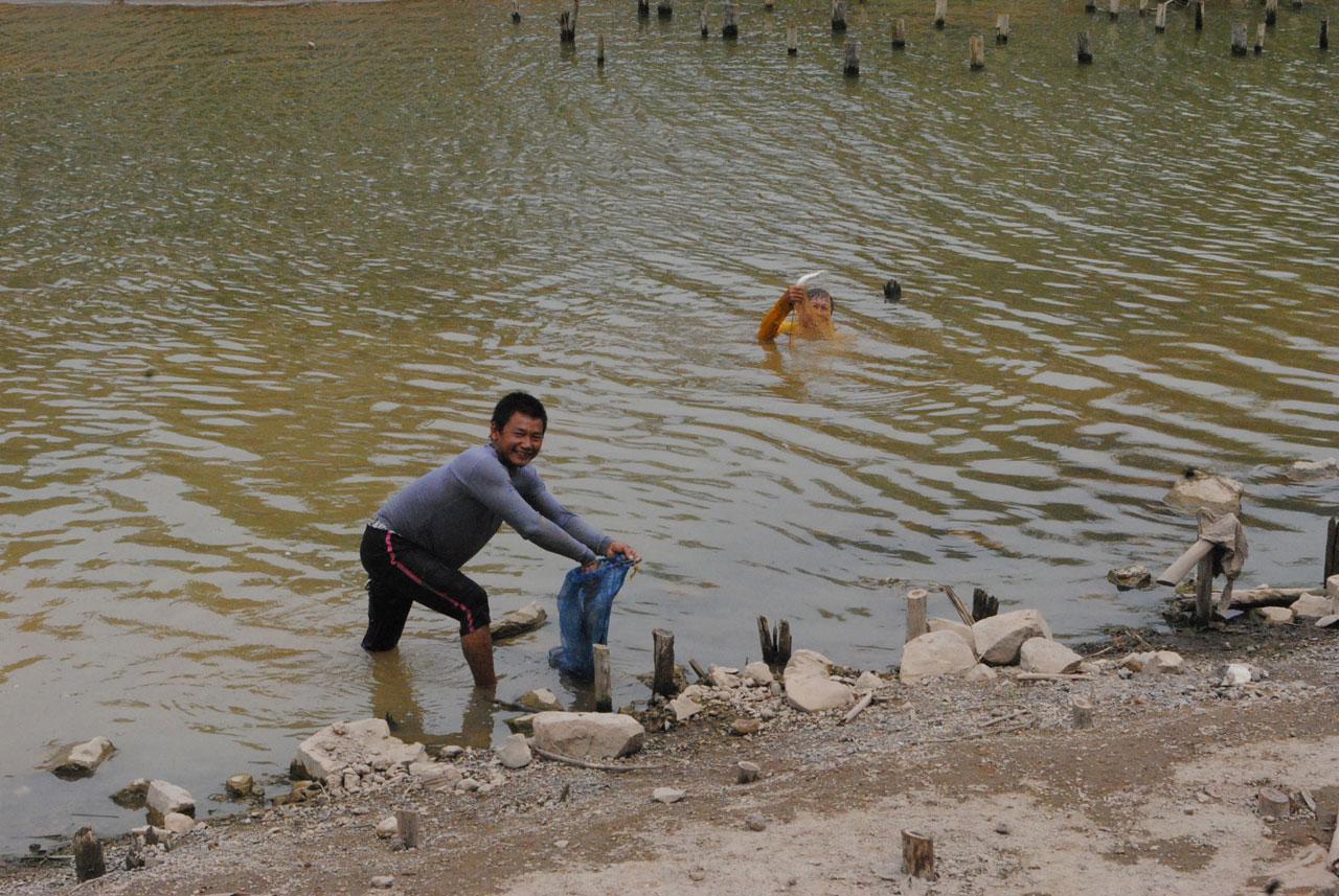 สวรรคโลก คึกคัก ชาวบ้านหยุดทำงานหลักชั่วคราว หันหน้าทอดแหหาปลาในแอ่งน้ำ ซึ่งขณะนี้น้ำแห้งขอด โดยเฉพาะบริเวณใต้สะพานพัฒนาท้องถิ่น เมืองสวรรคโลก มีปลานานาชนิดมาอาศัยอยู่ ปลากดขายดีมาก ราคาสูงถึง 200-250 ต่อ กก.