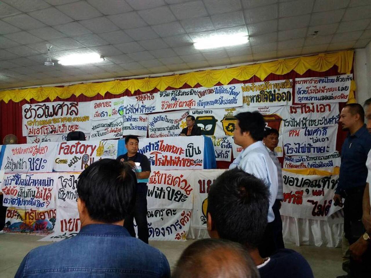 " ยืนยันว่าจะมีการจ้างงานในท้องถิ่น และมีที่กลบฝังกากขยะไว้รองรับแล้ว ส่วนเจ้าที่ด้านสิ่งแวดล้อมกล่าวว่า ตนมีหน้าที่พิจารณาตามหนังสือที่แจ้งมา จากนั้นที่ประชุมเปิดโอกาสให้มีการออกมติ ซึ่งเกือบทั้งหมดเป็นเสียงส่วนใหญ่ ยกมือไม่เห็นด้วย อย่างไรก็ตาม มีบางส่วนที่เห็นด้วย " เจ้าพนักงานอำเภอ กล่าว