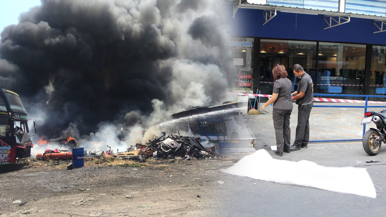 เพลิงไหม้รถบัส! ลานจอดแห่งหนึ่งใน อ.บางปะอิน จ.พระนครศรีอยุธยา