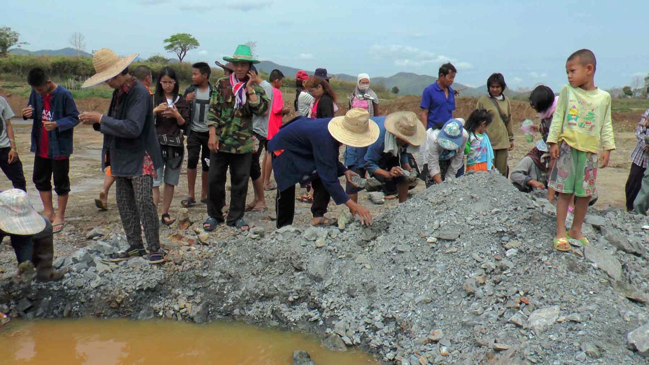 ชาวบ้านในพื้นที่ ต.ห้วยหม้าย อ.สอง จ.แพร่ พากันไปเก็บก้อนหิน หลังมีข่าวสะพัดว่ามีการค้นพบแร่ทองคำจำนวนมากบริเวณอ่างเก็บน้ำบ้านห้วยขอน ต.ห้วยหม้าย อ.สอง โดยพบว่าหินบางก้อนมีสีทองแวววาวใส ขณะที่ผู้นำชุมชนเตรียมประสานไปยังเจ้าหน้าที่หน่วยงานที่เกี่ยวข้องเพื่อเข้ามาตรวจพิสูจน์ว่าเป็นแร่ทองคำจริงหรือไม่.