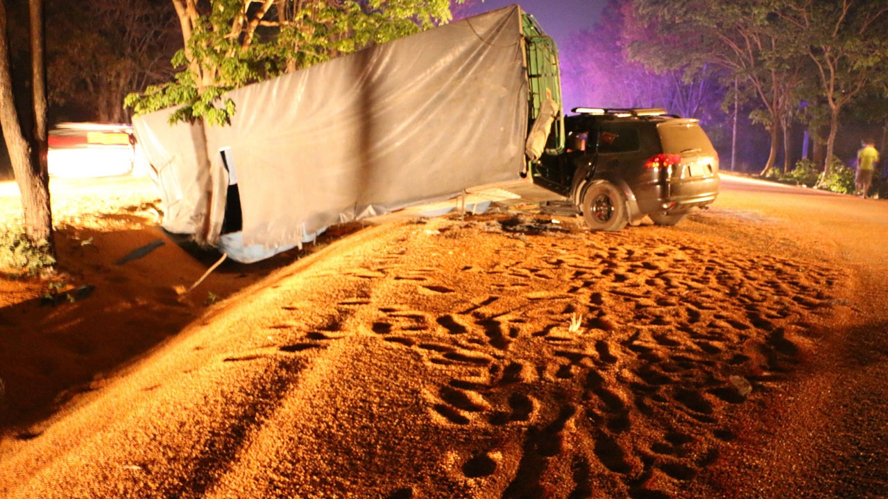 ด้านนายสมชาย คนขับรถมิตซูบิชิ เปิดเผยว่า ตนมาจากลำปางจะไปกรุงเทพฯ โดยขับมาด้วยความเร็ว 100 กว่ากิโลเมตรต่อชั่วโมง เมื่อถึงที่เกิดเหตุรถขับเหยียบเมล็ดข้าวโพดที่หล่นเกลื่อนถนน เป็นเหตุให้รถเสียหลักลื่นไถลเข้าไปชนตัวพ่วงที่พลิกตะแคงอยู่กลางถนนเต็นแรง จนรถพังเสียหายยับเยิน