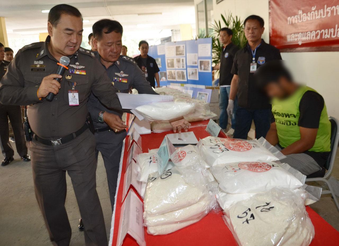 พล.ต.ท.ธนิตศักดิ์ ธีระสวัสดิ์ ผบช.ภ.5 ได้เผยถึงการจับกุมและขยายผลการจับกุมว่า วันที่ 6 มี.ค. 59 เจ้าหน้าที่ตำรวจ กก.สส.ภ.จว.เชียงใหม่ ได้สืบสวนหาข่าวเกี่ยวกับผู้มีพฤติการณ์ในการขนยาเสพติดจากภาคเหนือไปส่งยังภาคใต้ และได้รับแจ้งจากสายลับว่ามีชายคนหนึ่งน่าจะมีพฤติการณ์เกี่ยวข้องกับยาเสพติด ได้ว่าจ้างรถยกให้ไปยกรถยนต์ของกลางที่จอดเสียอยู่บริเวณทางเข้าโรงแรม ฮอลิเดย์รีสอร์ท ตำบลหนองจ๊อม อำเภอสันทราย จังหวัดเชียงใหม่ เจ้าหน้าที่ตำรวจจึงเดินทางไปตรวจสอบ และทำการสืบสวนจนทราบว่า นายพัฒนพงศ์ จันทร์ผุด เป็นผู้ว่าจ้าง และได้เคยว่าจ้างในลักษณะนี้ไปส่งที่ จ.สมุทรสงคราม มาแล้วครั้งหนึ่ง เมื่อประมาณกลางเดือน ธ.ค. 58 เจ้าหน้าที่ตำรวจจึงได้ตรวจสอบรถยนต์คันดังกล่าวโดยละเอียดพบ เฮโรอีน จำนวน 41 ถุง รวมน้ำหนักประมาณ 14.350 กิโลกรัม ซุกซ่อนบริเวณกันชนด้านหลังรถยนต์ และจากการสืบสวนทราบว่า นายพัฒนพงศ์ กำลังจะขึ้นเครื่องบินกลับจังหวัดสุราษฎร์ธานี จึงนำกำลังไปที่ท่าอากาศยานเชียงใหม่ และพบตัวนายพัฒนพงศ์ เจ้าหน้าที่จึงนำตัวไปที่ กก.สส.ภ.จว.เชียงใหม่ พร้อมกับได้พยานหลักฐาน คือภาพจากกล้องวงปิดของท่าอากาศยานเชียงใหม่ และโรงแรมฮอลิเดย์รีสอร์ท ตามโครงการ POLICE EYE ของตำรวจภูธรภาค 5 ที่แสดงว่า นายพัฒนพงศ์ เป็นผู้ครอบครองรถของกลางและยาเสพติด มาแสดงให้นายพัฒนพงศ์ดู จึงรับสารภาพกับเจ้าหน้าที่ตำรวจว่า ได้ร่วมกับชายชาวเขาไม่ทราบชื่อ บรรจุเฮโรอีนของกลางซุกซ่อนไว้ในรถยนต์ของกลางดังกล่าว จึงได้สั่งให้มีการขยายผล