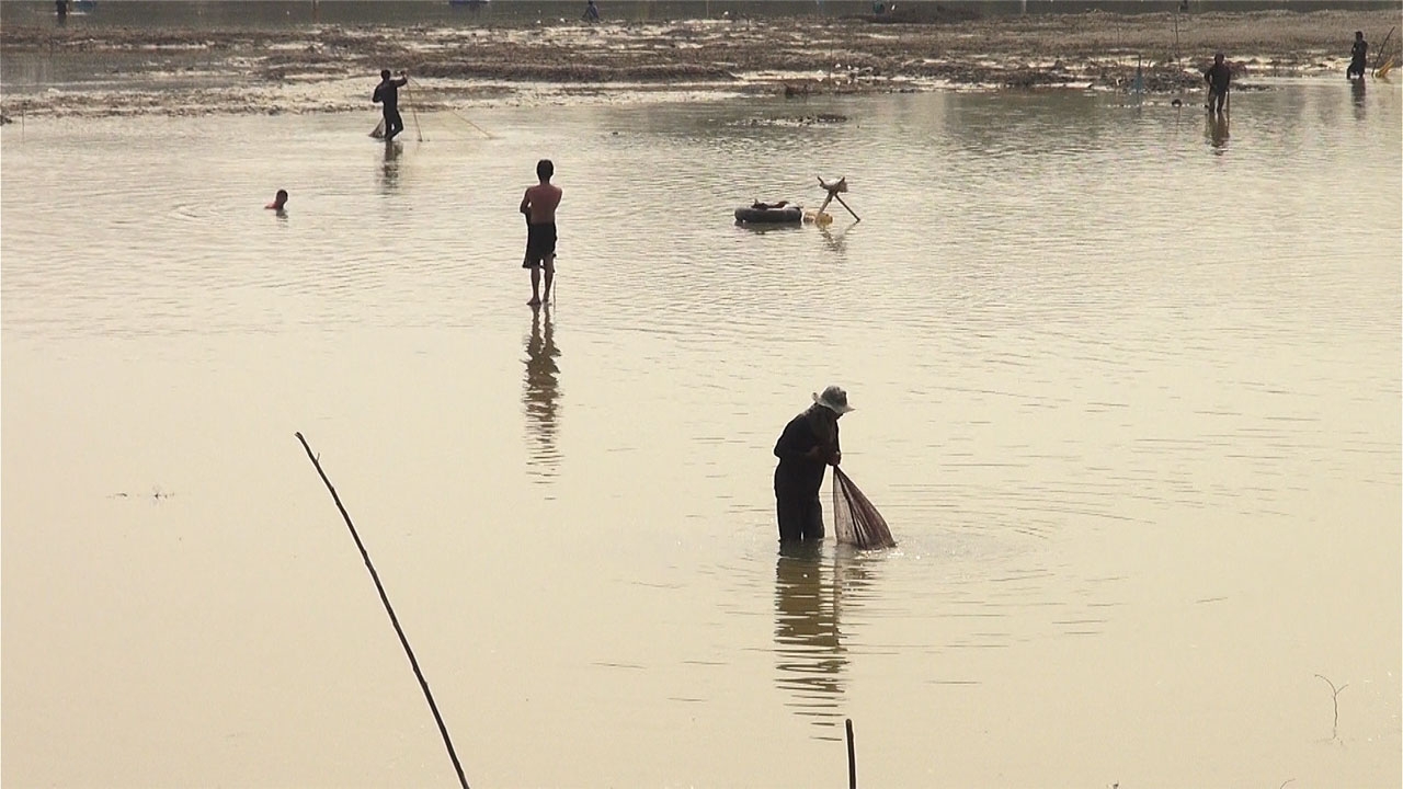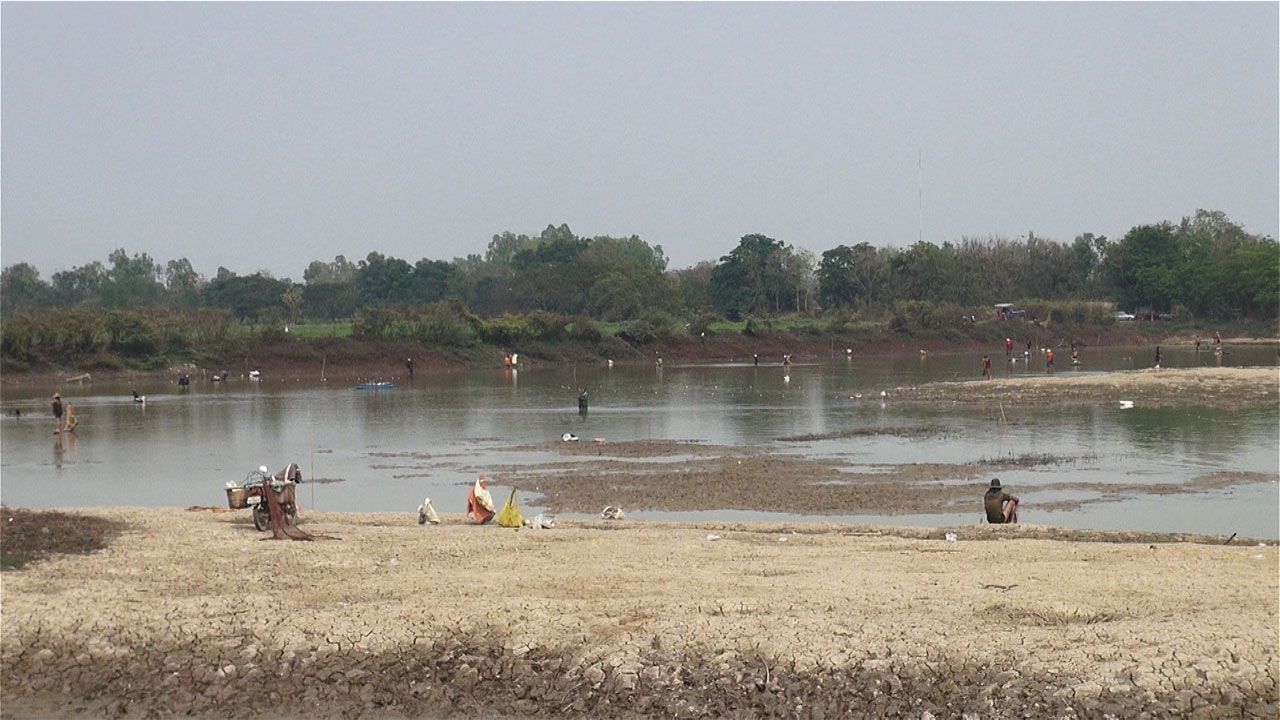บึงกะโล่ น้ำเริ่มแห้ง ทำให้ชาวบ้านหลายร้อยคนไปทอดแหหาปลาประทังชีวิต