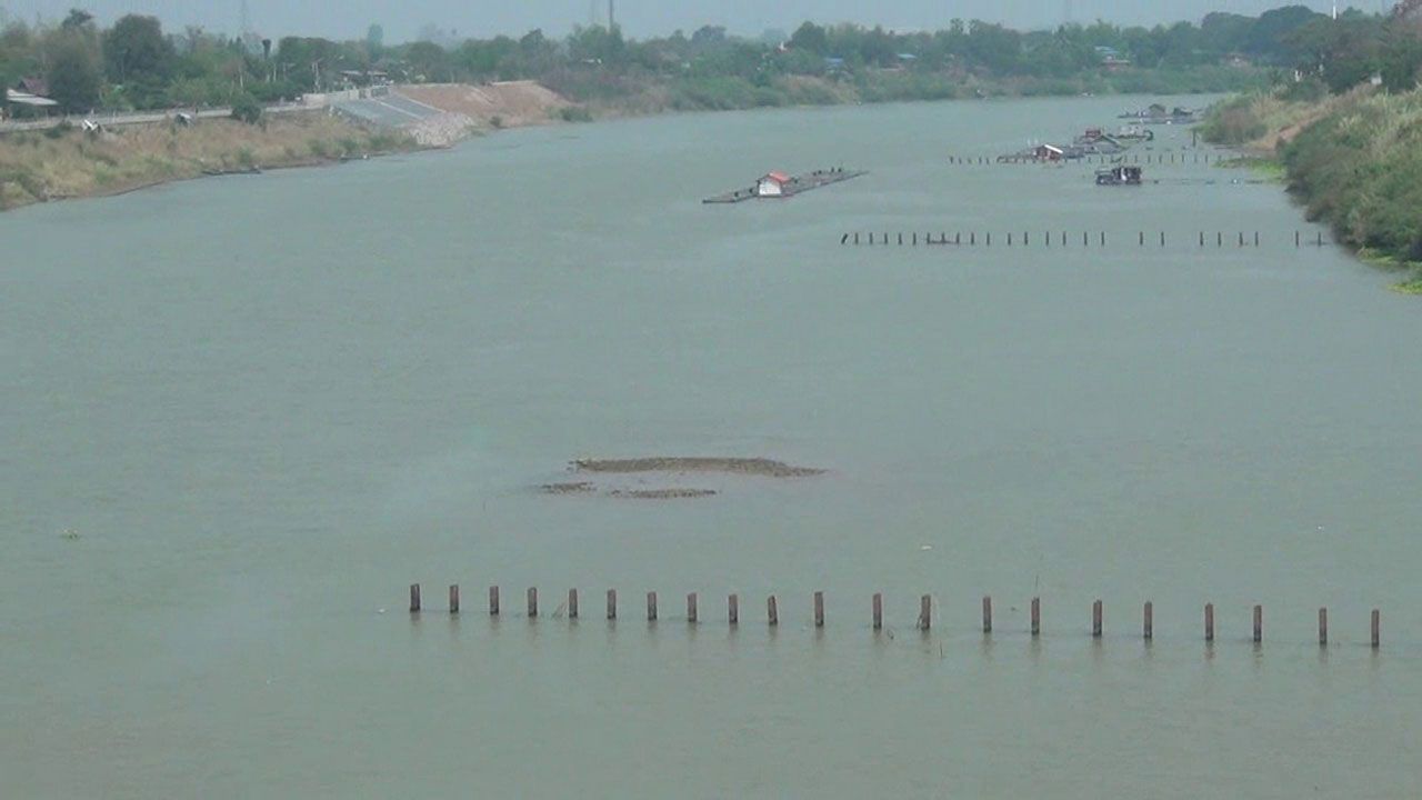 อ่างทองแล้งหนัก! สันดอนโผล่กลางเจ้าพระยา เหล็กชะลอน้ำโผล่