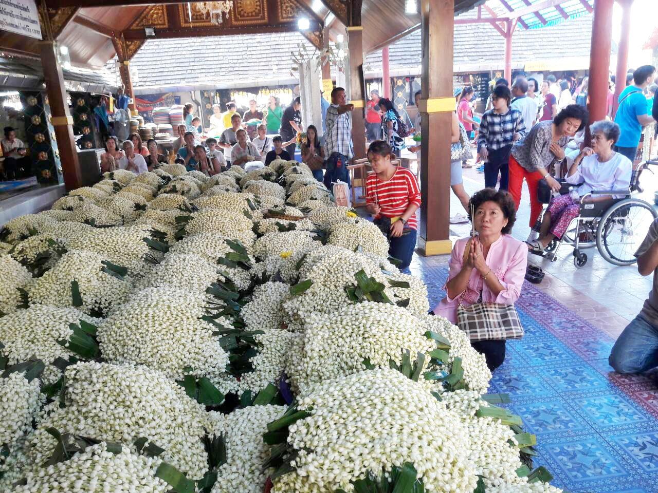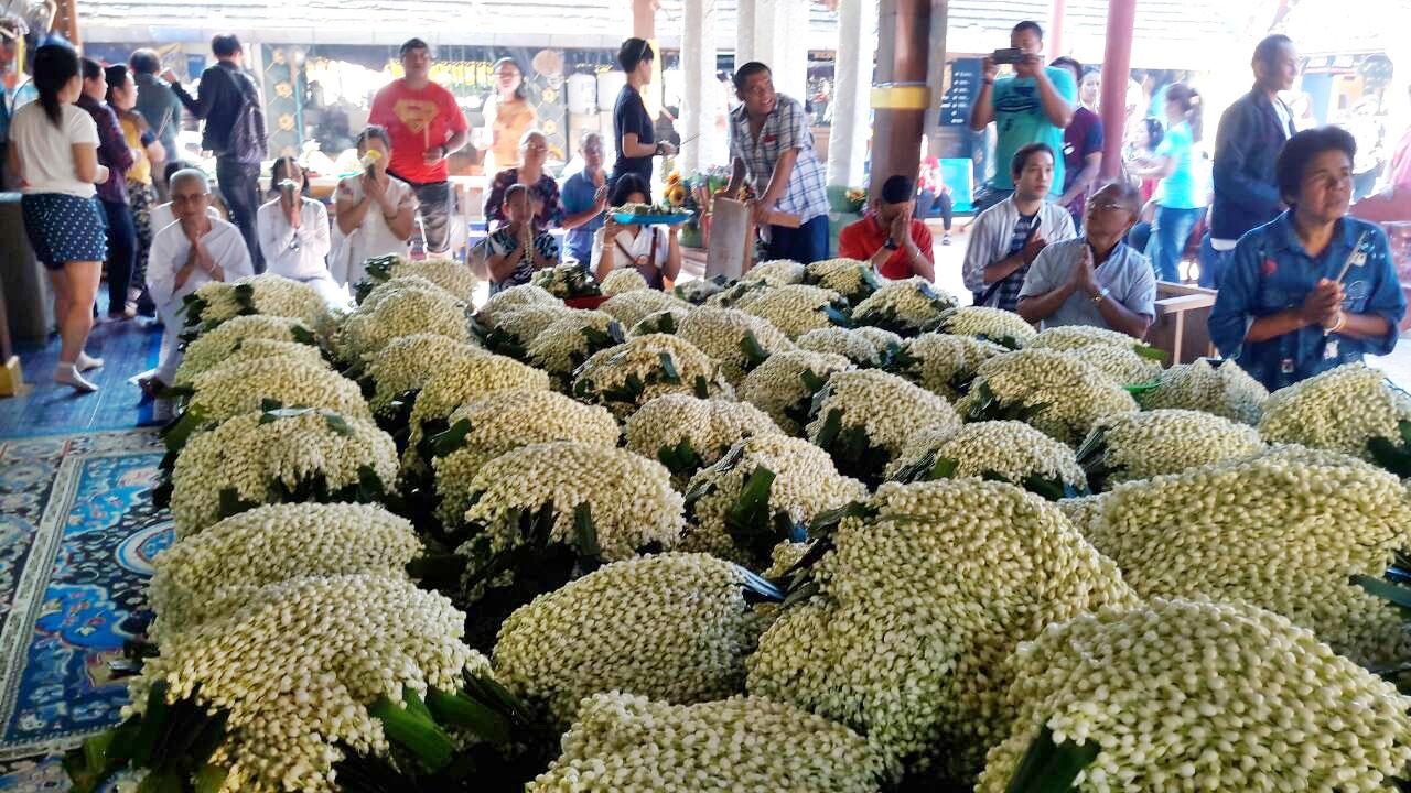 วันที่ 21 มี.ค. 59 เมื่อเวลา 09.00 น. ที่วัดพระธาตุดอยคำ (หลังพืชสวนโลก) หมู่ 3 ต.แม่เหียะ อ.เมือง จ.เชียงใหม่ ได้มีนางสาวอ้อม เผ่าจินดา อายุ 79 ปี อยู่บ้านเลขที่ 169 หมู่ 6 ต.บางเสร่ อ.สัตหีบ จ.ชลบุรี พร้อมด้วยนางสาวประนอม เผ่าจินดา อายุ 62 ปี น้องสาว และครอบครัวได้เดินทางมาพร้อมกับนำพวงมาลัยดอกมะลิ จำนวน 1 แสนพวง ขึ้นมาแก้บนองค์หลวงพ่อทันใจ