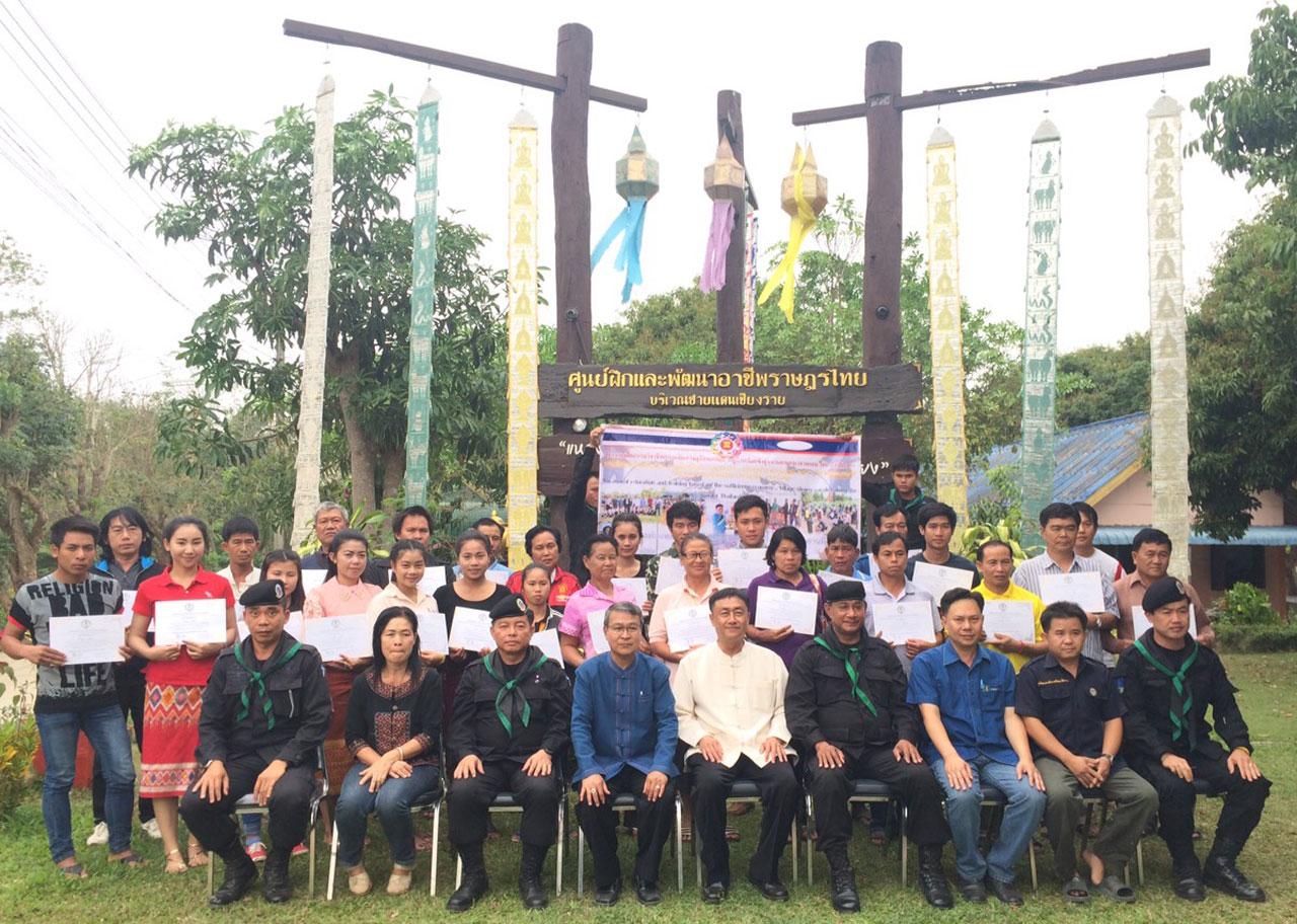 เมื่อวันที่ 26 มีนาคม 59 นายพินิจ แก้วจิตคงทอง นายอำเภอเชียงแสน จ.เชียงราย พร้อมด้วย พ.อ.พักตร์พงษ์ เงสันเที๊ยะ รอง ผบ.ฉก.ทพ.31 นายพิศิษฐ์ วศินภัทรโภคิน ผอ.ศูนย์ฝึกและพัฒนาอาชีพราษฎรไทยบริเวณชายแดนเชียงราย และ ร.อ.โกมินทร์ บุญภา ผบ.ร้อย ทพ.3103 ร่วมเปิดการอบรมตามหลักเศรษฐกิจพอเพียงให้กับราษฎร 2 หมู่บ้าน ไทย-ลาว ที่บ้านจอมกิตติ ม.6 ต.เวียง อ.เชียงแสน ซึ่งมีราษฎรจากบ้านใหญ่ศรีเมืองงาม เมืองต้นผึ้ง แขวงบ่อแก้ว สปป.ลาว และราษฎรบ้านสวนดอก ต.บ้านแซว อ.เชียงแสน จำนวน 40 คน เข้าฝึกอบรม
