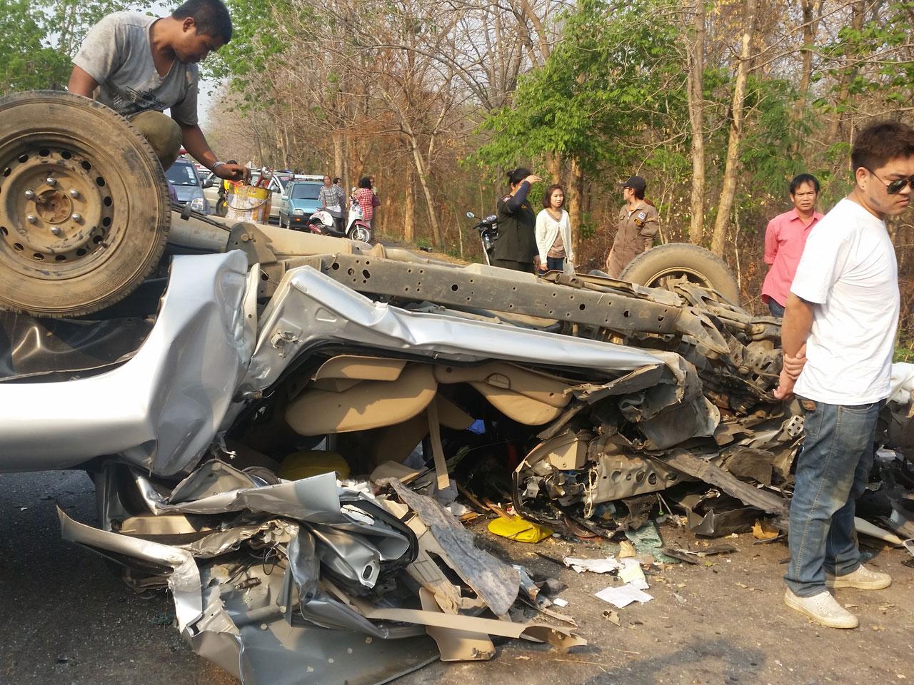 จากการตรวจสอบที่เกิดเหตุ พบบนถนนขาล่อง มีรอยรถปิกอัพเสียหลักเป็นแนวประมาณ 20 เมตร ก่อนแฉลบปีนขึ้นเกาะกลางถนน จังหวะนั้น มีรถเบนซ์คันดังกล่าววิ่งสวนมา มุ่งหน้าไป กทม. ก่อนพุ่งชนกัน กระทั่งปิกอัพหมุนหลายตลบพลิกคว่ำ จนรถพังยับเยิน ทั้งนี้ นายคำสุข ซึ่งเป็นคนขับปิกอัพ ทราบว่า เพิ่งเดินทางกลับจากงานแต่งของญาติที่ อ.สบปราบ จ.ลำปาง ซึ่งเจ้าหน้าที่จะได้สอบสวน หาสาเหตุอย่างละเอียดอีกครั้ง เพื่อดำเนินคดีตามกฎหมายต่อไป.
