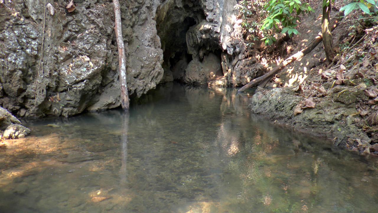 นายอำเภอพบพระ ร่วมนายทหารเคเอ็นยู สำรวจ "น้ำดั้น" น้ำออกรูต้นแม่น้ำเมย เป็นเส้นแบ่งเขตแดนไทย-เมียนมา ซึ่งมีน้ำไหลแรงตลอดปี แม้เข้าสู่หน้าแล้ง