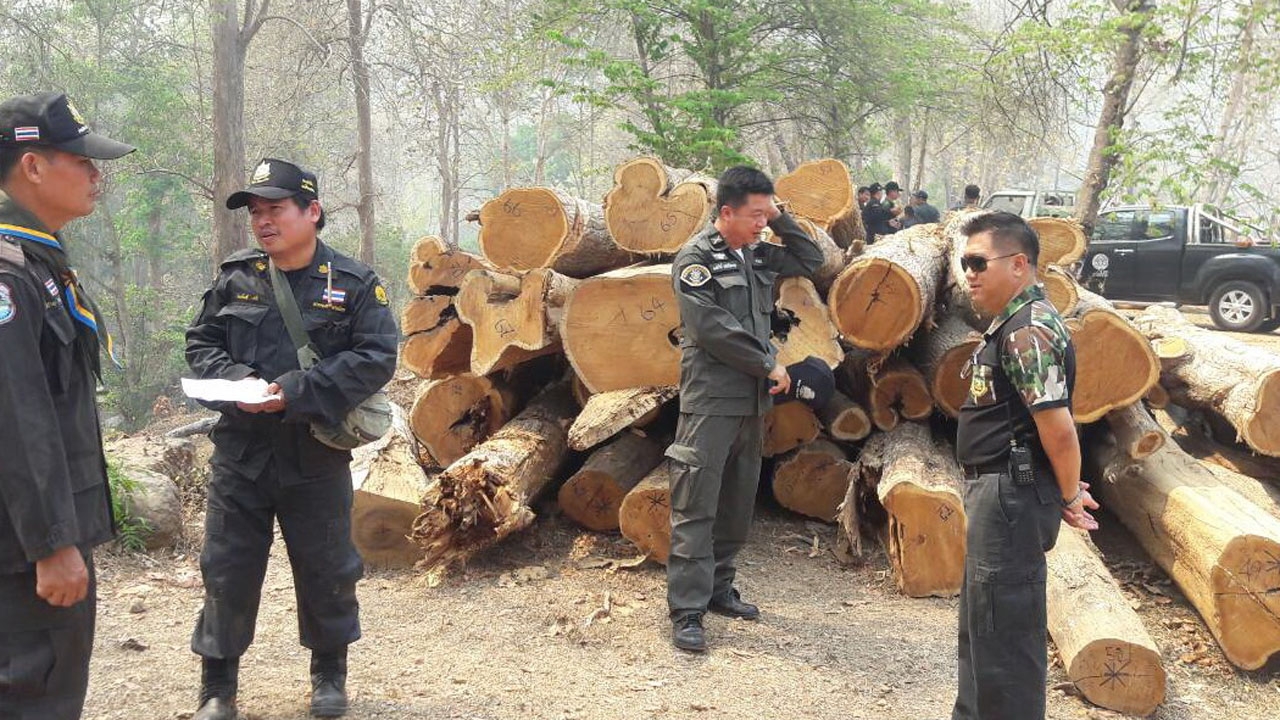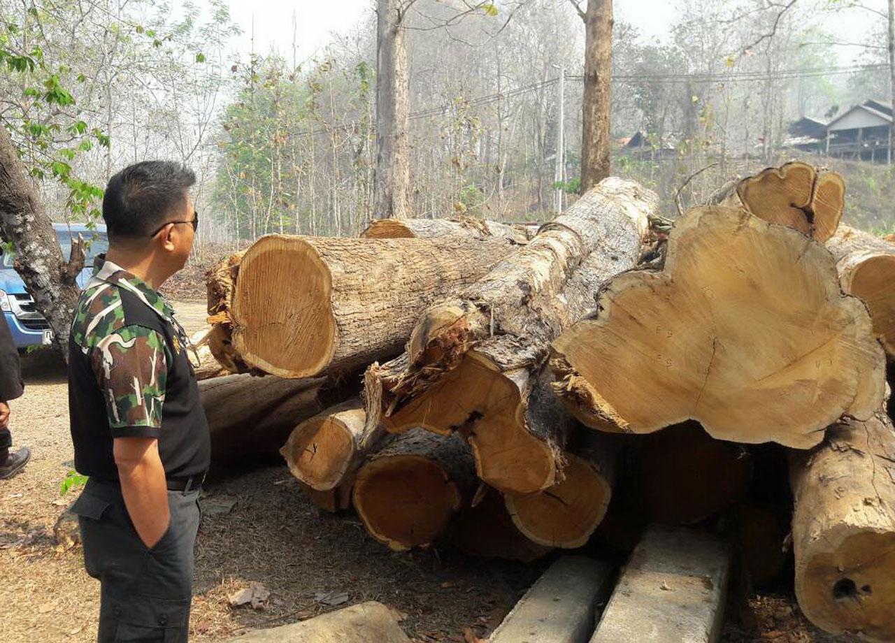 สำหรับจุดที่ 1 ตรวจพบไม้สักท่อน และไม้กระยาเลยท่อน วางกองไว้ที่บริเวณลานจอดรถข้างจุดชมวิวแม่น้ำสองสี บ้านสบเมย ต.แม่สวด อ.สบเมย จำนวน 57 ท่อน โดยไม่พบรูปรอยดวงตราของรัฐตีประทับไว้แต่อย่างใด ซึ่งลักษณะยังเป็นไม้ใหม่และสด ลักษณะของไม้พึ่งตัดและไม่เกิน 1 อาทิตย์ สืบทราบว่าเป็นการลักลอบตัดและชักลากโดยการไฟฟ้าส่วนภูมิภาคอำเภอแม่สะเรียง จนท.จึงได้ร่วมทำการตรวจยึด เพื่อดำเนินคดีตามกฏหมาย