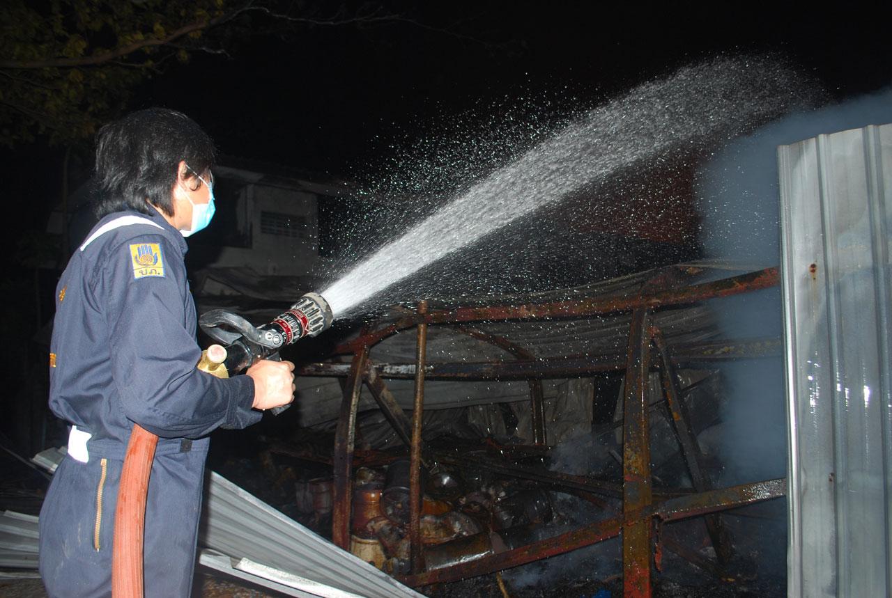 เบื้องต้นจุดเกิดเหตุเป็นร้านรับซื้อของเก่าเนื้อที่ประมาณ 5 ไร่ เจ้าหน้าที่ระดมฉีดน้ำ กระทั่งเวลา 06.30 น. ยังไม่สามารถดับเพลิงได้สนิท เพียงควบคุมเพลิงไว้ได้ในวงจำกัด นอกจากนั้น เพลิงยังลุกลามไปยังหอพักด้านหลัง ทำให้ผู้อาศัยแตกตื่นอพยพออกมาโกลาหล แต่ยังไม่มีรายงานผู้ได้รับอันตราย