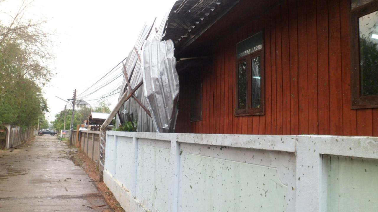 ทั้งนี้ พบว่า บ้านนายจตุรงค์ บุญนัก เลขที่ 109 บ้านทุ่งบานเย็น หมู่ 13 ตำแหน่งรองนายกเทศมนตรีเทศบาลตำบลเชียงคำ ถูกสังกะสีจากโกดังใกล้บริเวณพัดมาปะทะหลังคา ทำให้เสาไฟฟ้าข้างบ้านหักโค่น 1 ต้น ขณะสำรวจยังประเมินค่าเสียหายไม่ได้ ซึ่งจะได้ออกสำรวจและรายงานต่อไป