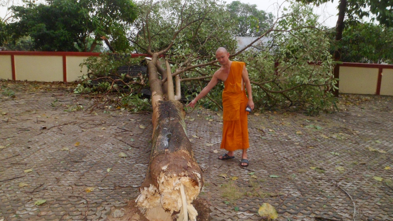 เกิดฝนฟ้าคะนองในบริเวณหมู่บ้านทุ่งบานเย็น อ.เชียงคำ จ.พะเยา ต้นไม้ในวัดนันตาราม อายุสิบกว่าปี สูงประมาณ 20 กว่าเมตร ได้หักโค่นลงทับกำแพงด้านทางทิศตะวันออกได้รับความเสียหายในบางส่วน