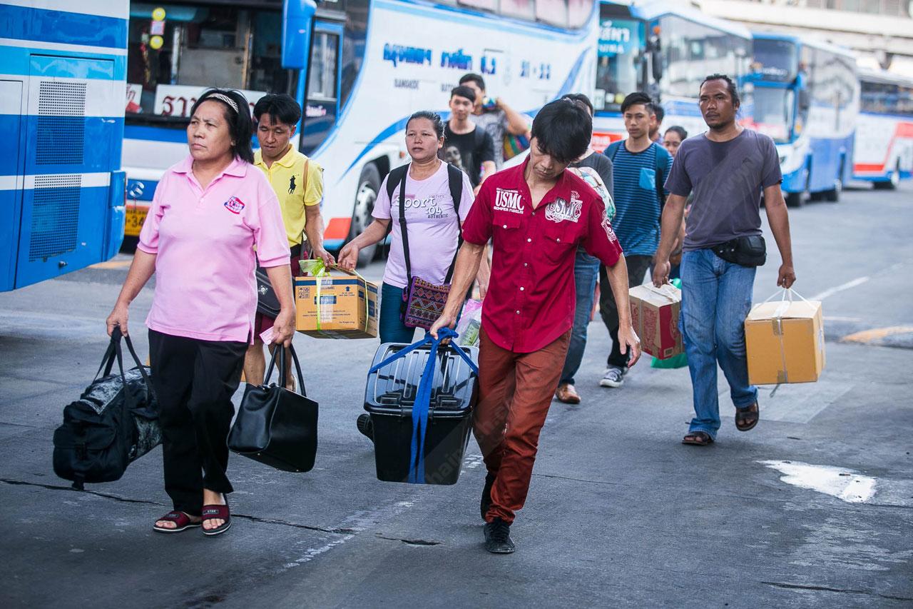 วันเดียวกันที่สถานีขนส่งกรุงเทพ (หมอชิต 2) ยังคงมีประชาชนเข้ามาใช้บริการรถบริษัทขนส่ง จำกัด เดินทางกลับไปฉลองเทศกาลสงกรานต์ที่บ้านเกิด โดยต่างพากันเข้ามาจับจองพื้นที่ภายในอาคารและนอกอาคาร เพื่อนั่งรอรถเดินทางกลับต่างจังหวัด จนแน่นขนัดไปไม่เฉพาะแต่เก้าอี้เท่านั้น พื้นที่ทางเดินก็แน่นขนัดไปด้วยผู้คนเช่นกัน ส่วนที่บริเวณสนามหญ้าหน้าอาคาร ผู้โดยสารบางรายอาศัยร่มไม้หลบแดดกันเป็นจำนวนมาก ในส่วนของการป้องกันไม่ให้มีการฉวยโอกาสขึ้นราคาตั๋วโดยสารนั้น ทาง บขส.ได้จัดเจ้าหน้าที่คอยดูแลอย่างใกล้ชิด หากมีใครฝ่าฝืนจะถูกลงโทษตั้งแต่ให้หยุดเดินรถ ไปจนถึงเพิกถอนใบอนุญาตประกอบการ นอกจากนี้ เจ้าหน้าที่ประชาสัมพันธ์ บขส.ได้ประกาศเสียงตามสาย เตือนผู้เข้ามาใช้บริการซื้อตั๋วกับเจ้าหน้าที่เท่านั้น เช่นเดียวกับที่สถานีขนส่งสายใต้ใหม่ มีประชาชนเข้ามาใช้บริการอย่างเนืองแน่น ท่ามกลางเจ้าหน้าที่ดูแลรักษาความปลอดภัยบริเวณทางเข้า-ออก และตามจุดต่างๆ เพื่อเฝ้าระวังกลุ่มมิจฉาชีพที่เข้ามาก่อเหตุ พร้อมกับให้ข้อมูลการเดินทางให้กับประชาชนอีกด้วย