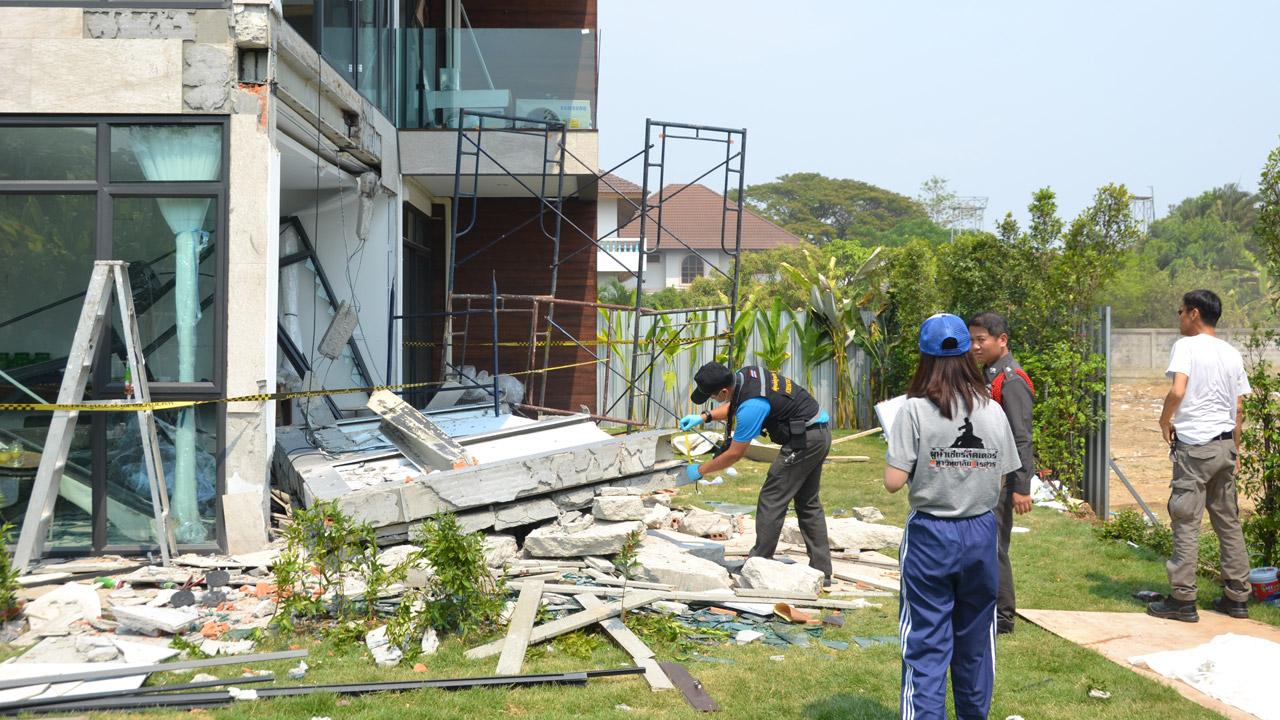 วันที่ 11 เม.ย.59 พ.ต.ต.อดุลย์ สวยสม สารวัตร(สอบสวน) สภ.เมือง เชียงใหม่ เข้าตรวจสอบบ้านไม่มีเลขที่ ในซอยเจ้าแม่กวนอิม ซอย 3 ตำบลป่าแดด อำเภอเมืองเชียงใหม่ จึงพร้อมด้วย พ.ต.ท.ฐานันดร วิทยาวุฑฒิกุล นวท. (สบ 3) หน.พฐ.จว.เชียงใหม่ และแพทย์จาก รพ.มหาราชนครเชียงใหม่รุดไปสอบสวน เมื่อไปถึงบ้านที่เกิดเหตุ เป็นบ้านปูน 2 ชั้น ซึ่งกำลังอยู่ระหว่างการตกแต่งเป็นบ้านตัวอย่าง ของโครงการแห่งหนึ่ง หลังได้รับแจ้งมีเหตุระเบียงบ้านชั้น 2 ถล่มทับคนงานที่กำลังปีนระเบียงขึ้นไปติดกระจกมีผู้บาดเจ็บและเสียชีวิต