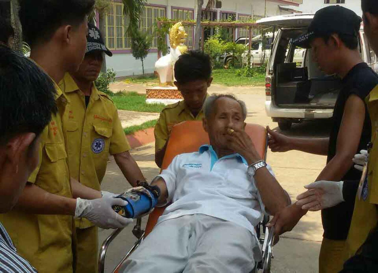 โดยในช่วงค่ำวันที่ 11 เม.ย. ได้มีการแชร์ข้อความและรูปภาพของชายสูงวัยคนหนึ่งในเฟซบุ๊กกู้ภัยเด่นชัย และมีการส่งต่อๆ กัน คือลุงวัย 69 ปี ถูกหมีกัดจนมือขวาขาดเห็นแต่กระดูก ผู้สื่อข่าวได้สอบถามไปยังหน่วยกู้ภัยเด่นชัย โดยนายดำรงเกียรติ กิติประภัทร หัวหน้าหน่วยกู้ภัยเด่นชัย ให้ข้อมูลว่า ศูนย์กู้ชีพเด่นชัย จ.แพร่ ได้รับแจ้ง มีประชาชนโดนหมีกัด บริเวณวัดศรีคีรินทร์ทราราม หมู่ 11 ต.เด่นชัย อ.เด่นชัย จ.แพร่ จึงจัดรถพยาบาลออกตรวจสอบจุดเกิดเหตุ พบผู้ได้รับบาดเจ็บ รู้สึกตัวดี มีอาการหน้าซีด แผลฉีกขาดบริเวณแขนขวาลึกถึงกระดูก อาสาฯ กู้ชีพเด่นชัยให้การช่วยเหลือปฐมพยาบาลเบื้องต้น และเคลื่อนย้ายผู้ได้รับบาดเจ็บไปยังโรงพยาบาลสมเด็จพระยุพราชเด่นชัย