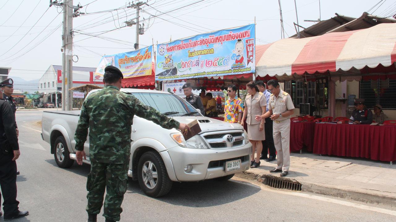 วันที่ 12 เม.ย. 59 นายปรีชา สุทนต์ นายอำเภอทองแสนขัน จ.อุตรดิตถ์ ออกตรวจเยี่ยมให้กำลังใจเจ้าหน้าที่ตำรวจ ทหาร อส. อพปร. กำนันและผู้ใหญ่บ้าน ประจำศูนย์ป้องกัน และลดอุบัติเหตุบนท้องถนน ช่วงเทศกาลสงกรานต์ 7 วันอันตราย ระหว่างวันที่ 11-17 เม.ย. นี้ โดยมีการตรวจยานพาหนะทุกชนิดที่ขับสัญจรไปมา ซึ่งด่านดังกล่าว จะมีเจ้าหน้าที่ตำรวจ และอพปร. คอยตรวจ 24 ชั่วโมง และคอยให้บริการ ช่วยในการลดอุบัติเหตุให้เป็นศูนย์ เพื่อตอบสนองนโยบายของทางรัฐบาล และของนายสุรศักดิ์ เจริญศิริโชติ ผู้ว่าราชการจังหวัดอุตรดิตถ์ ที่เน้นพื้นที่เทศบาลตำบลทองแสนขัน "เมาไม่ขับ" เช่นกัน