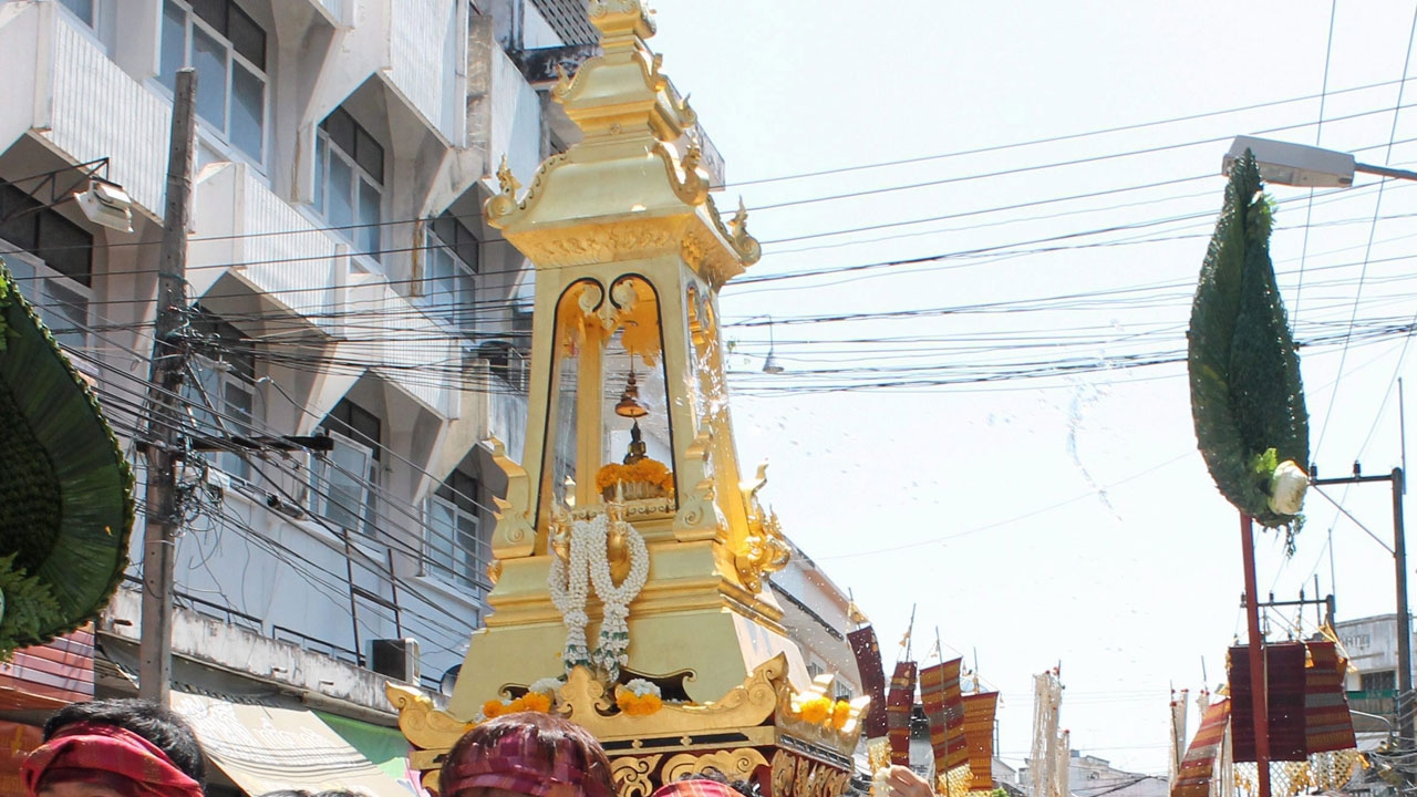 โดยอัญเชิญพระแก้วบุษราคัม ขึ้นรถบุษบกแห่รอบเมือง เพื่อให้พุทธศาสนิกชนชาวอุบลราชธานีได้นมัสการ กราบไหว้ และสรงน้ำพระแก้วบุษราคัม สร้างสิริมงคลให้แก่ชีวิตเนื่องในโอกาสวันสงกรานต์หรือวันขึ้นปีใหม่ของไทยเป็นประจำทุกปี