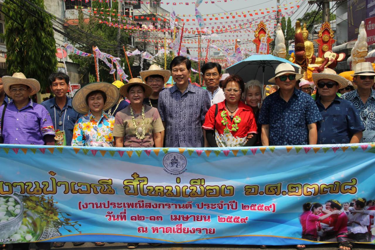 นายกเทศมนตรีนครเชียงราย อัญเชิญพระสิงห์จากวัดพระสิงห์เชียงรายขึ้นบุษบก นำขบวนแห่สงกรานต์จากชุมชนต่างๆ จำนวน 16 ขบวน แห่ไปรอบเมืองเชียงราย ก่อนทำพิธีเปิดงานสงกรานต์ประเวณีปี๋ใหม่เมืองที่หาดเชียงรายริมฝั่งแม่น้ำกก