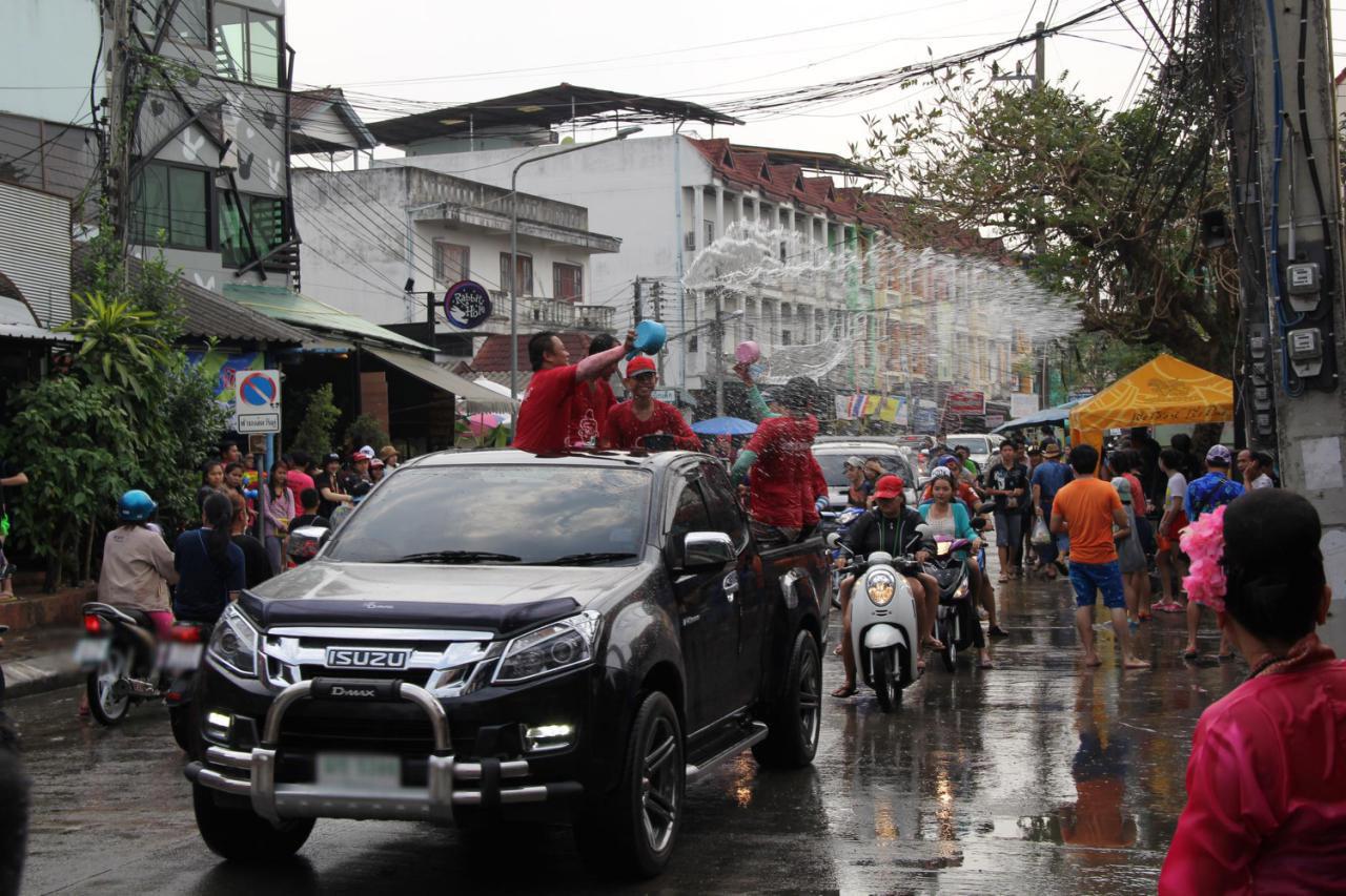 จากนั้นชาวเชียงรายได้ออกมาเล่นน้ำกันอย่างคึกคักตั้งแต่เวลา 14.00 น.ท่ามกลางอากาศร้อนอบอ้าว ที่ถนนสันโค้งน้อย ชุมชนถนนคนม่วนได้จัดเป็นถนนคนเล่นน้ำ ประชาชนนำรถปิกอัพขนน้ำใส่ถังพลาสติกขนาด 200 ลิตร เข้ามาเล่นสาดน้ำกัน จนเต็มถนนตลอดความยาวกว่า 500 เมตร ที่ถนนพหลโยธินสายในเมือง ชาวบ้านตั้งถังน้ำสายยางรอสาดน้ำยวดยานและคนที่สัญจรไปมาอย่างสนุกสนาน ตลอดถึงถนนสายหลักย่านไนท์บาซาร์มีนักท่องเที่ยวชาวต่างประเทศเข้าร่วม เล่นสงกรานต์สาดน้ำกันอย่างสนุกสนาน โดยบริเวณหน้าร้านค้าร้านอาหารต่างๆ ได้นำถังน้ำเตรียมให้นักท่องเที่ยวเล่นอย่างเต็มที่ ทำให้ถนนหลายสายหนาแน่นไปด้วยประชาชนและนักท่องเที่ยวทั้งชาวไทยและต่างประเทศรถติดกันยาวเหยียด