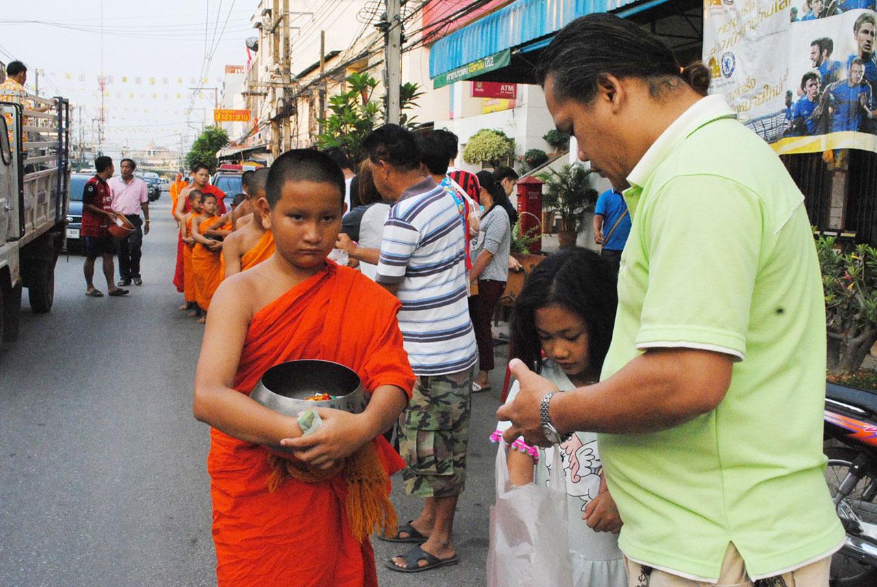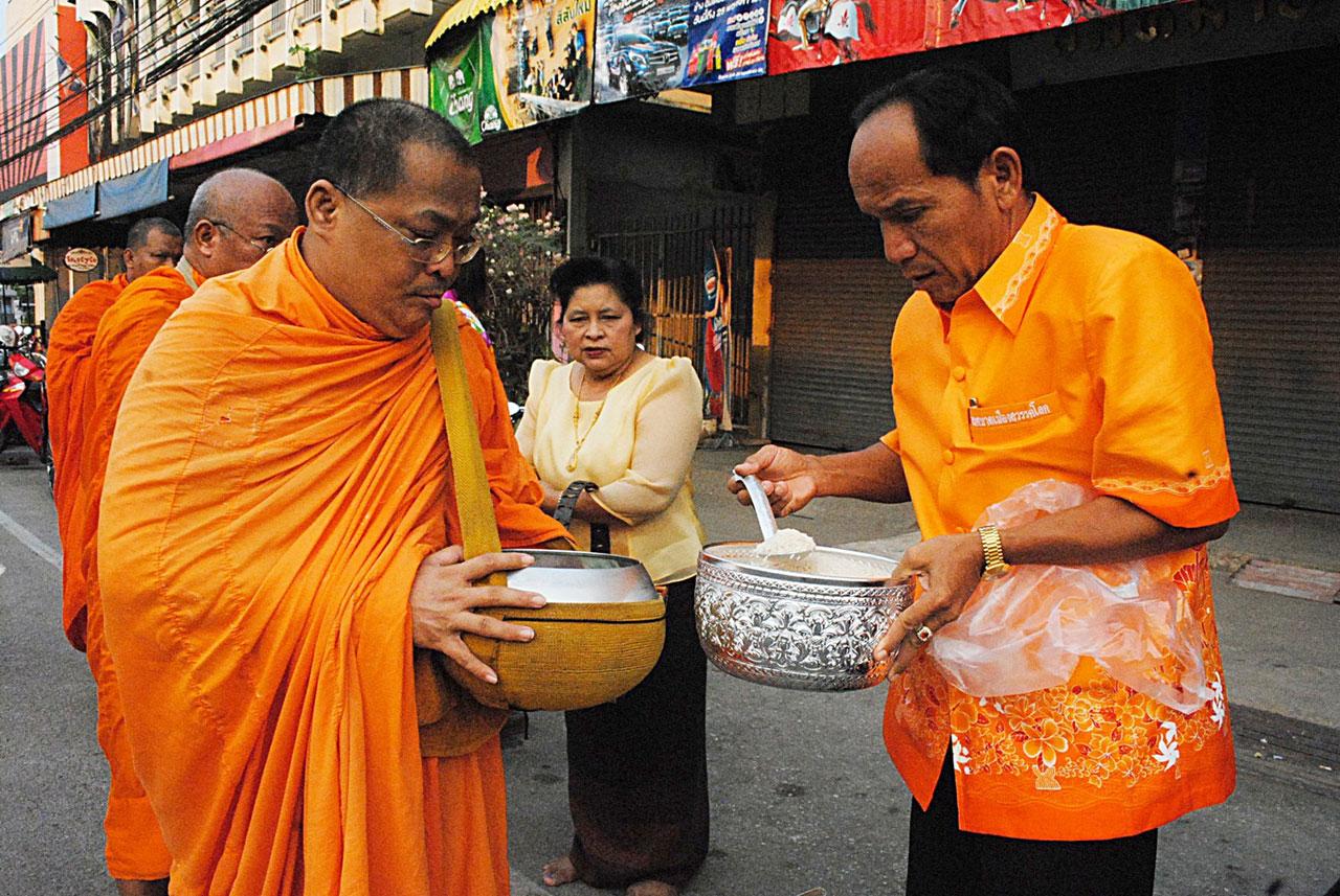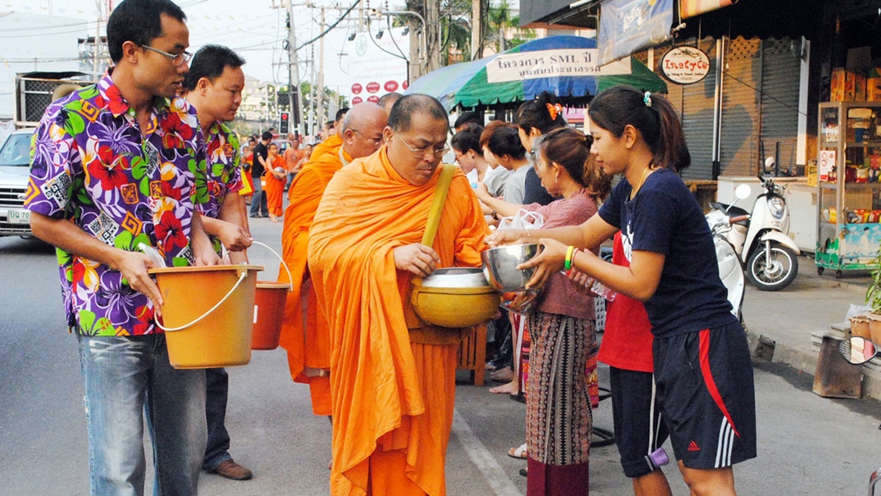 ประชาชนชาว อ.สวรรคโลก จ.สุโขทัย ตั้งแถวตักบาตรพระภิกษุและสามเณร รับบุญวันสงกรานต์ตั้งแต่เช้า ก่อนเตรียมสรงน้ำพระ พร้อมชมขบวนแห่นางสงกรานต์